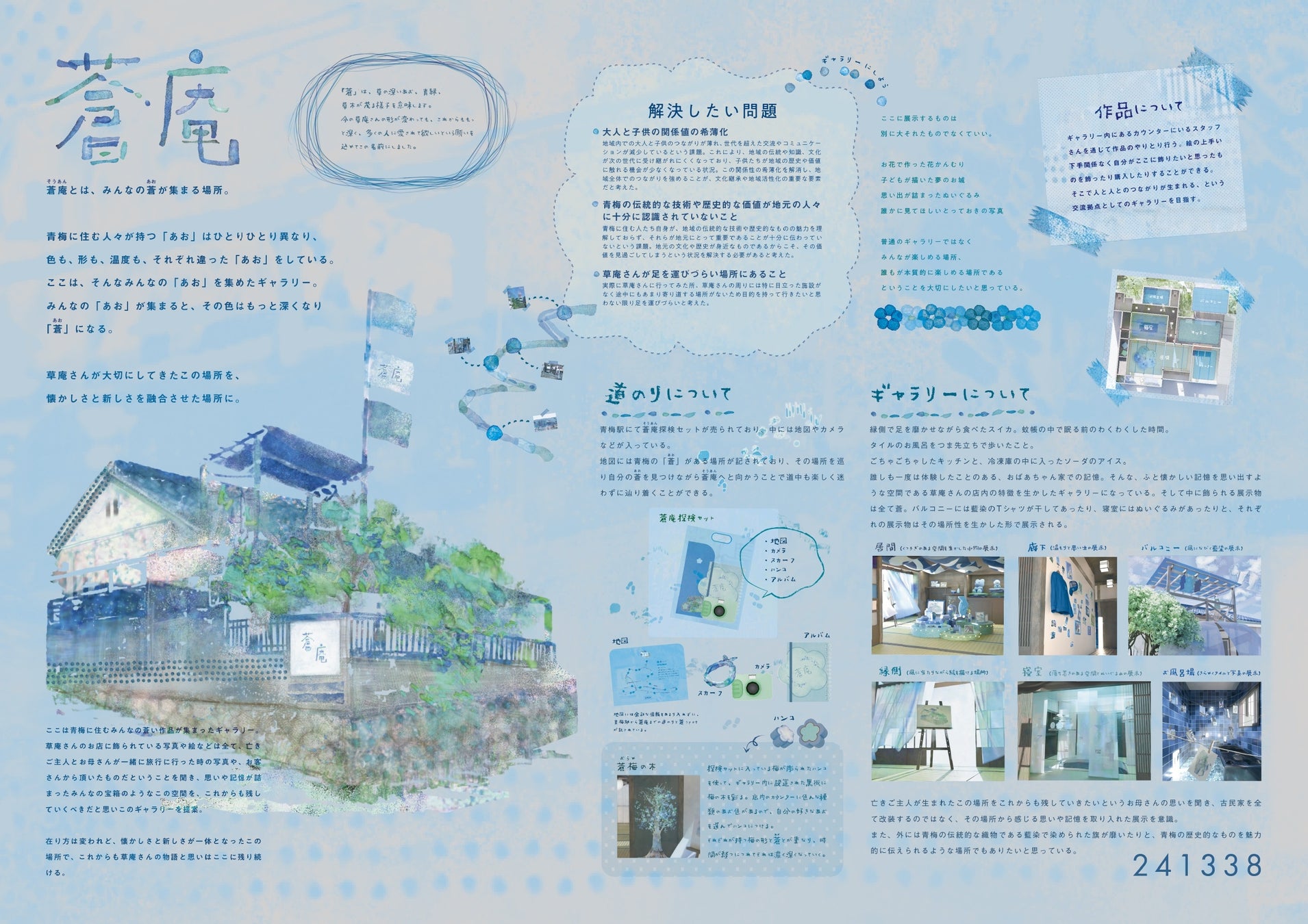 地域の人の参加を促す「青」を集めるというアイデアが、対象物件の歴史と持ち主への深い敬意が感じられる点が、他の作品と比較して際立っていました。また、空間が地域のものへと変化していく様子や、年月を重ねていく様子が想像できる点、作品タイトルに込められたこだわりなども、受賞の決め手となりました。