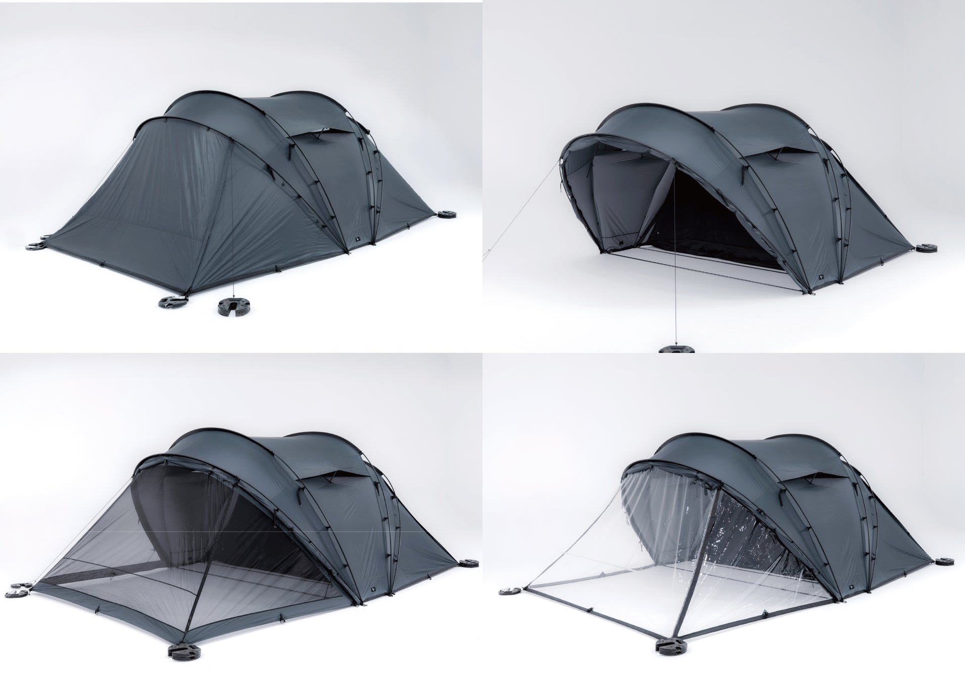 機能を削ぎ落としファミリーキャンプに適したシンプルな形を追求する事で、軽快にキャンプへ出かけ、快適にその日を過ごせる最適解のシェルターを追求し製品を開発。必要十分な機能に絞り、軽さと設営のしやすさにこだわりました。シンプルで洗練されたデザインが美しい2ルームシェルターです。