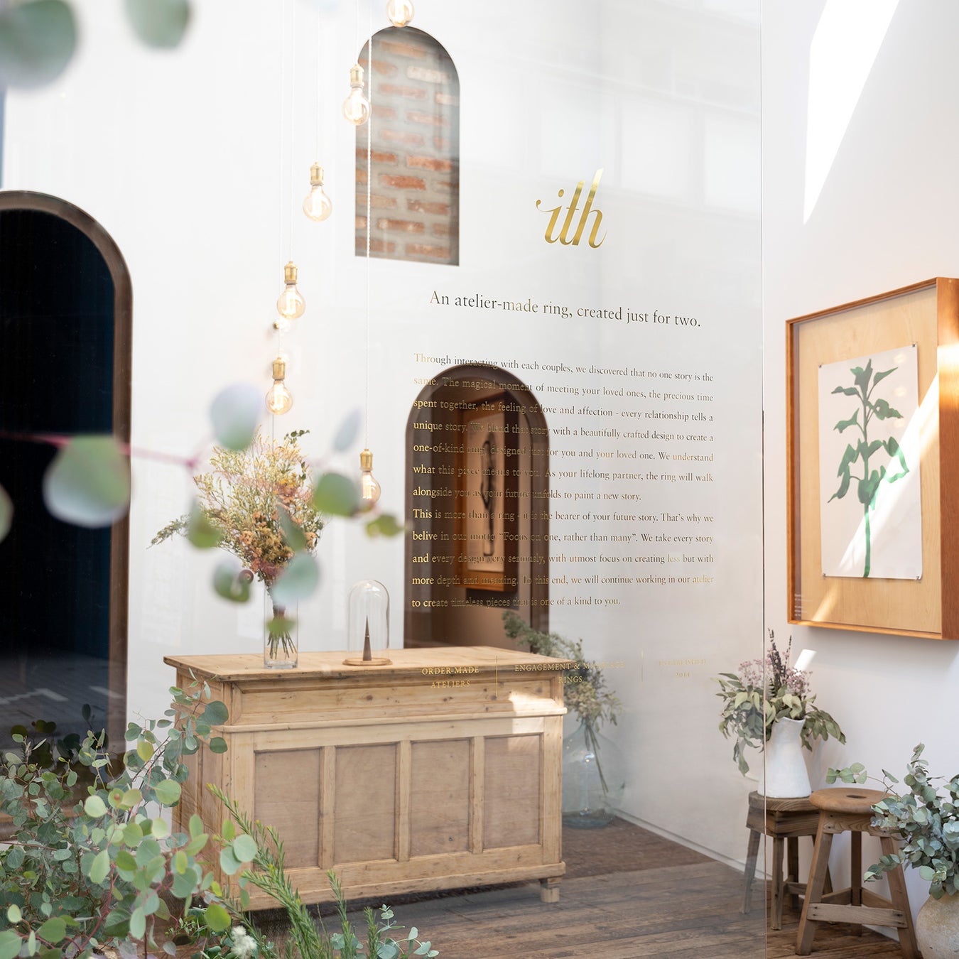 ithは、“One Story.One Ring.”がコンセプトのオーダーメイドジュエリーブランドです。2014年に吉祥寺の小さなアトリエから始まり、現在は国内12箇所およびシンガポール・台湾にて、つくり手がお客様のストーリーやご要望を伺いデザインを一緒に紡ぎあげ、国内の優れた職人の手で高品質の洗練されたジュエリーとしてお仕立ていたします。