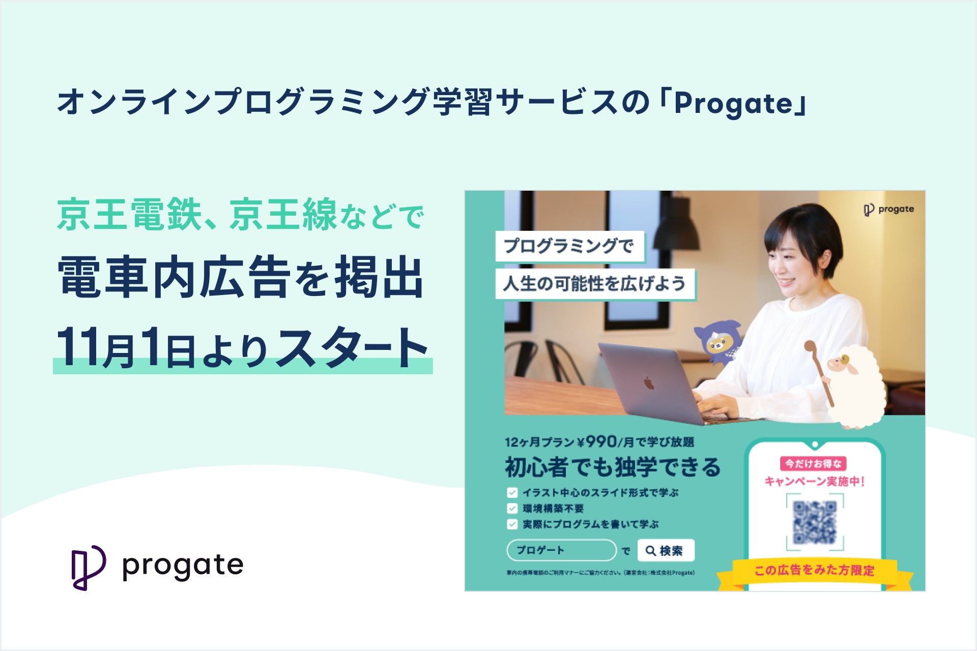 オンラインプログラミング学習サービスのProgate、同社初の電車内広告を掲出開始