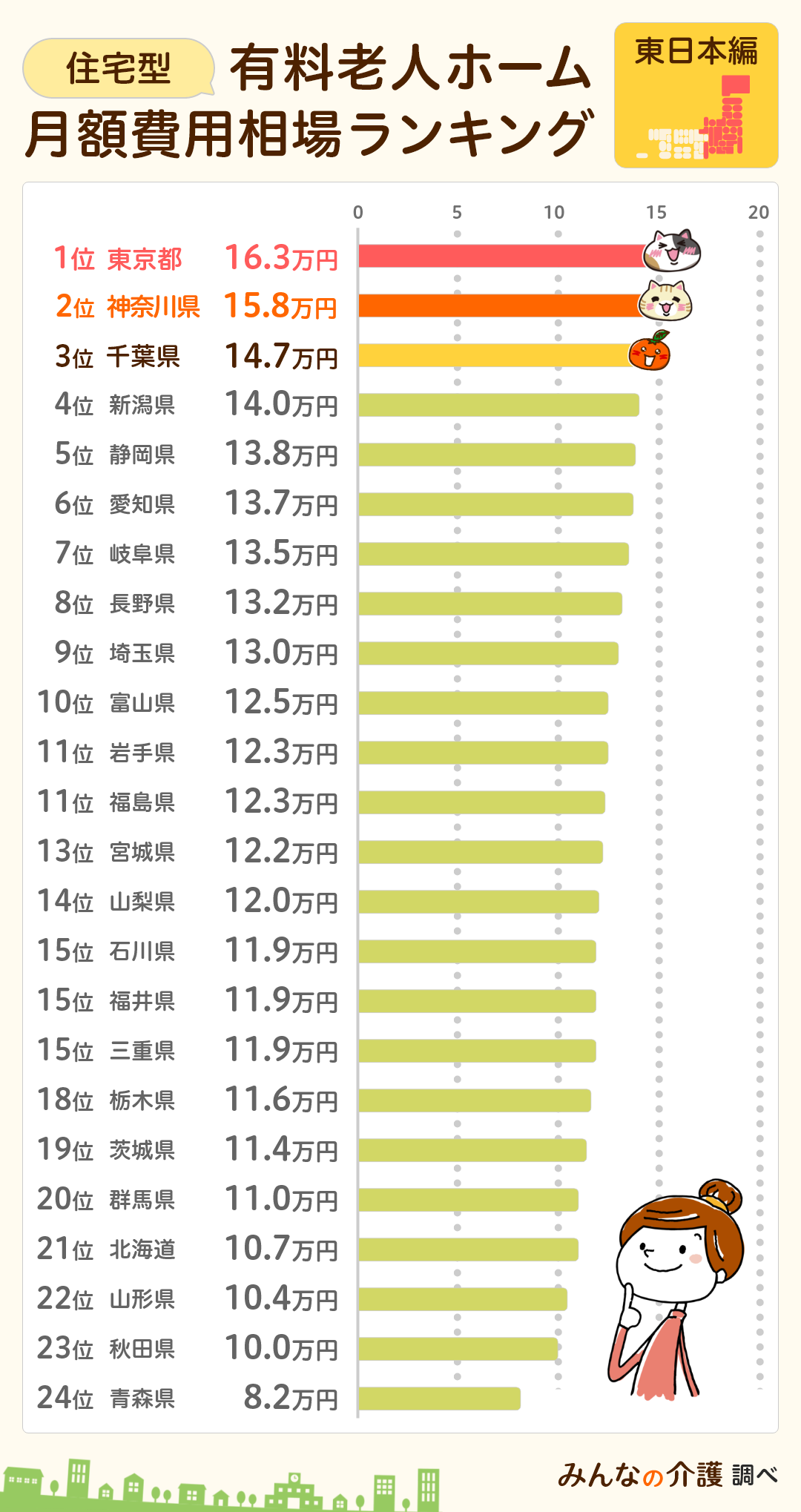 【みんなの介護】老人ホームの月額費用ランキング<住宅型有料老人ホーム 東日本編>