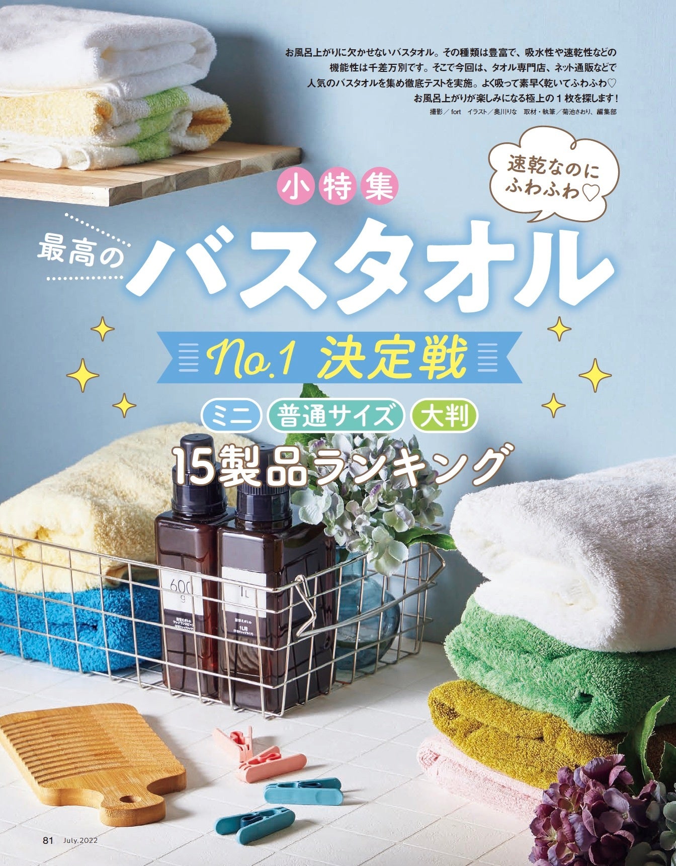 種類が豊富なバスタオルは、吸水性や速乾性などの機能性は千差万別です。そこで、タオル専門店、ネット通販などで人気のバスタオル15製品を集め徹底テスト。よく吸って素早く乾いてふわふわ。お風呂上がりが楽しみになる極上の1枚を探しました。
