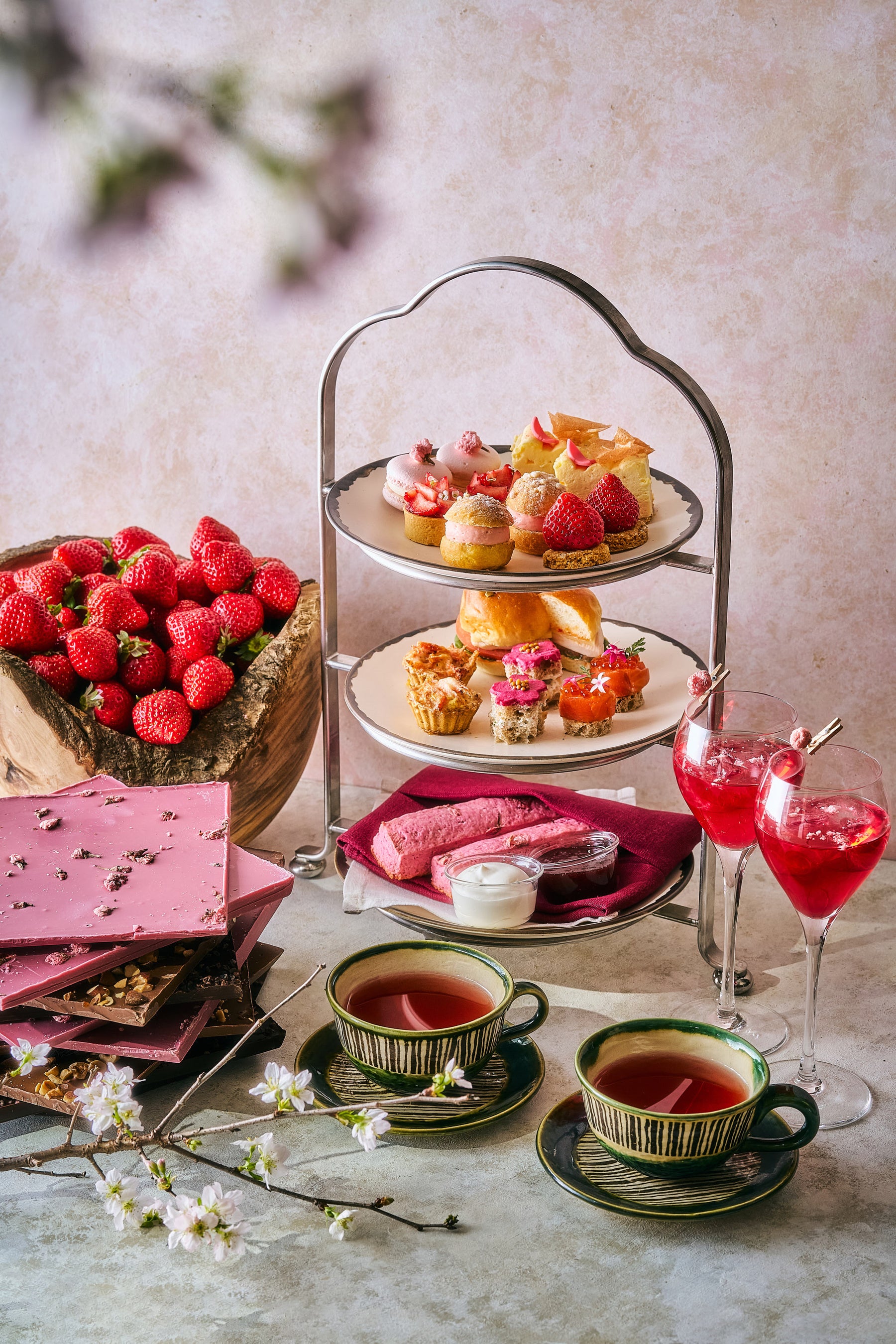 ザ タヴァン グリル&ラウンジでは、うららかに咲く桜からインスピレーションを得て、桜や苺を使用し淡いピンクでまとめた「桜アフタヌーンティー」を期間限定でご用意いたします。桜の上品な甘みと香りがふんわりと広がるシャンティクリームを軽やかな食感のサワードゥブリオッシュでサンドした「桜トロペジェンヌ」や、桜海老の香ばしい風味となめらかなアパレイユが織りなすハーモニーが絶妙な「桜海老キッシュ」など、春を感じるこの時期ならではの食材を活かした大人の味わいをご堪能いただけます。さらに、チョコレート大国と称されるスイス出身のシェフパティシエ ノルマン・ジュビンが手掛ける大好評のチョコレートバーのテーブルサービスに、桜の塩漬けをトッピングしたルビーチョコレートが登場。お好みの量で割って楽しむ桜の風味豊かなチョコレートをはじめとした3種類のチョコレートをフレッシュの苺とともにご提供いたします。
