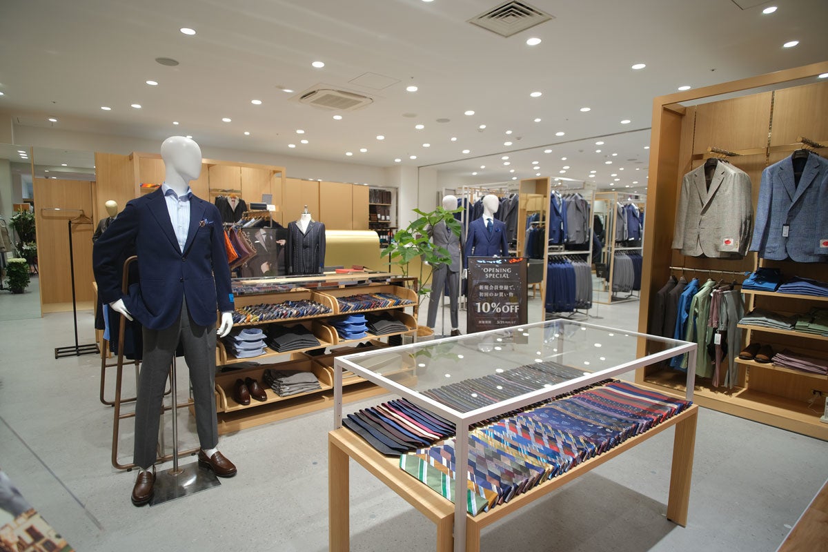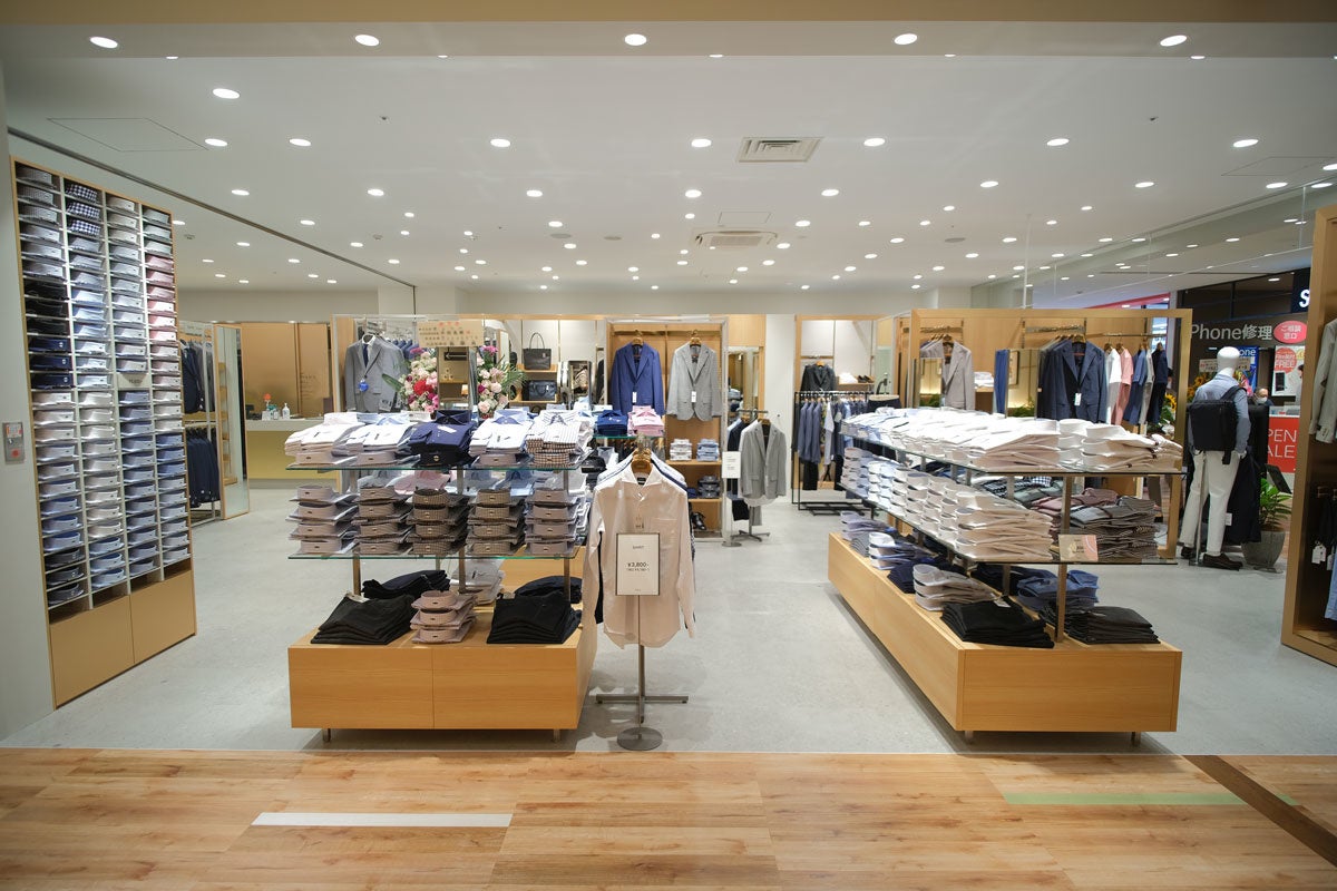 その”ONLY”のニューショップとなる「ONLY カメイドクロック店」は、お買い物しやすくレイアウトされた約58坪の店舗です。ワンランク上で固定ファンの多い「ONLY PREMIO」のスーツやジャケット、働き方の変化に対応した着心地の良いセットアップ、ネクタイなしでも着まわせるシャツ、独自の機能「インビジブルファンクション」を備えたパンツなど、新商品を多数取り揃えます。