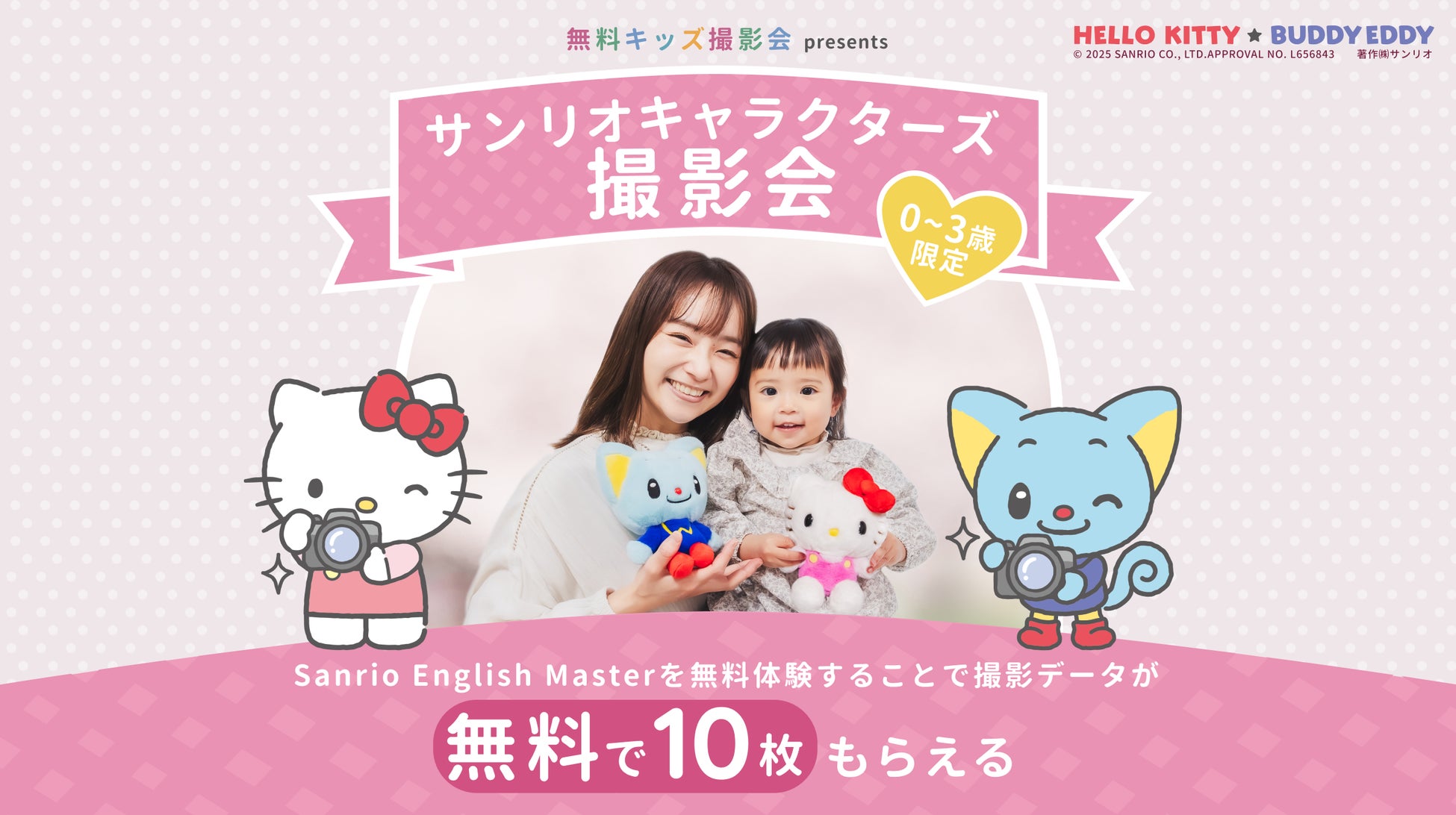 また、サンリオの遊びながら楽しく英語を学べる英語教材「Sanrio English Master」を無料でお試しいただけるキャンペーンも同時に実施中です。無料体験にご参加いただくと、プロカメラマンが撮影した写真を無料で10枚プレゼントいたします。