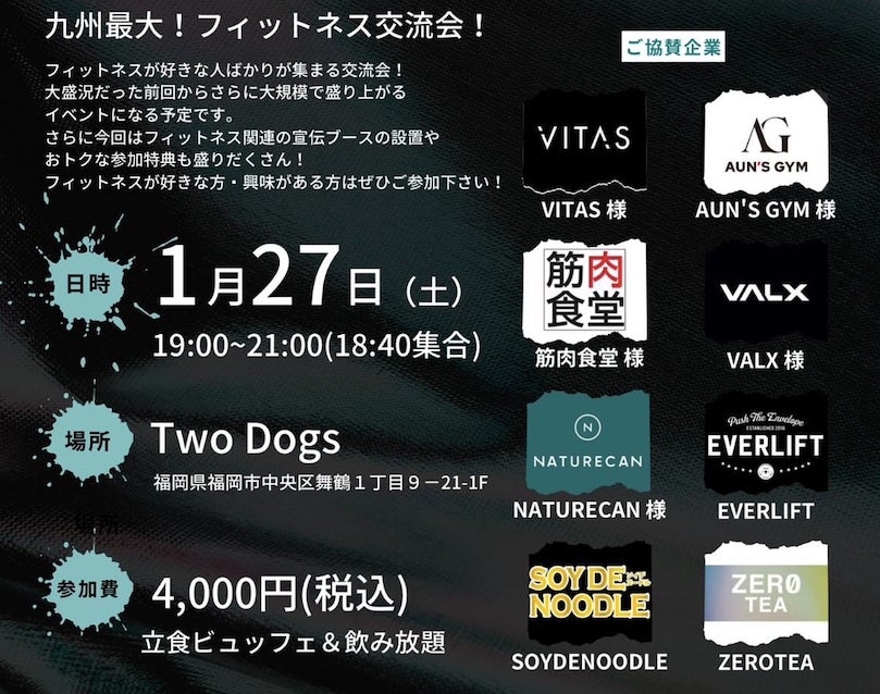【九州・福岡最大】フィットネス交流会2024を1/27天神にて開催!スペシャルゲストにインフルエンサーの今古賀翔さん参戦!協賛企業からの様々な特典も