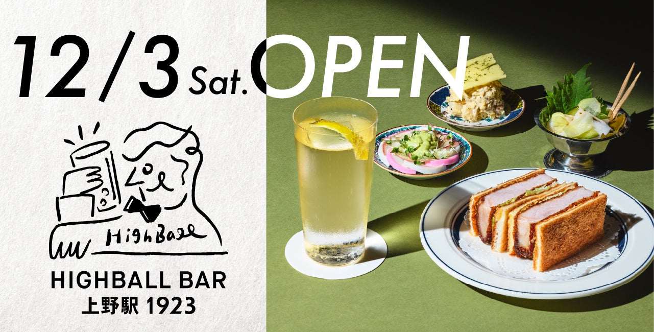 最高品質のハイボールをALL DAYで提供するハイボール専門店「HIGHBALL BAR 上野駅1923」12月3日(土)JR上野駅にオープン