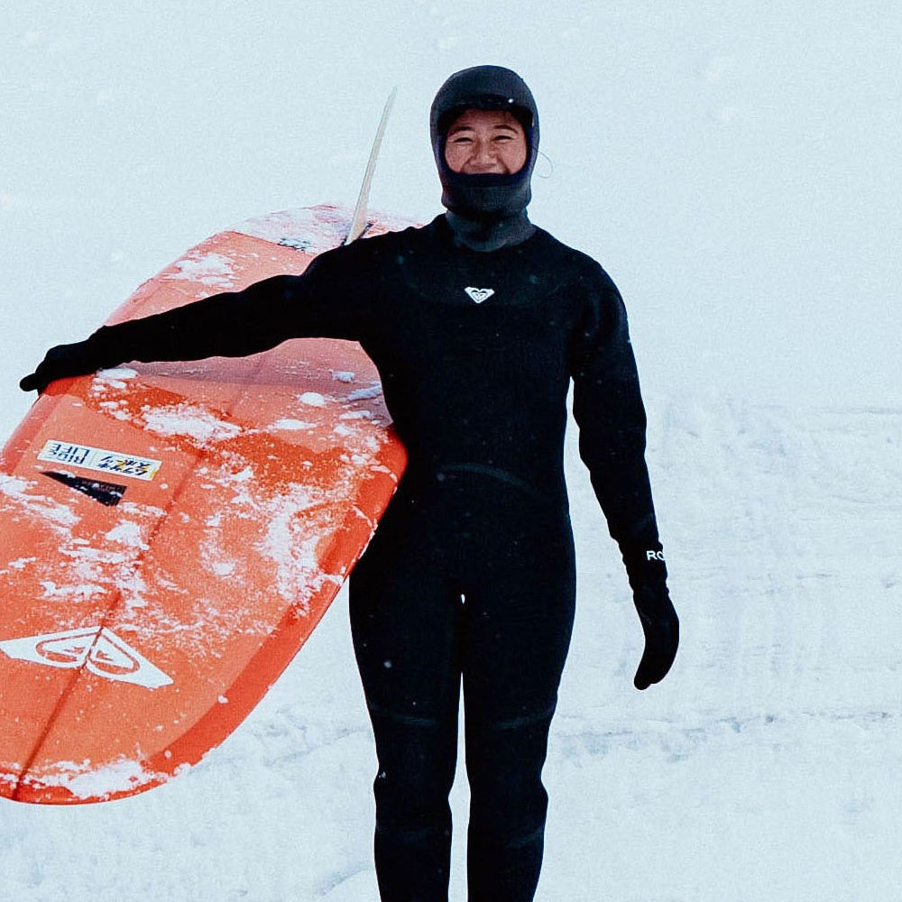 12歳から両親の影響でサーフィンを始め、水泳や陸上競技の経験も積んできました。2010年には、ROXY主催の国内最大規模のレディースアマチュアサーフィン大会で優勝。その後、JPSAにおいて年間グランドチャンピオンを3度獲得するなど、日本国内で輝かしい成績を収めています。さらに、WLT(ワールドロングボードツアー)の世界総合ランキングでは、2021年に7位、2024年には5位と過去最高の順位を達成し、世界的にも活躍しています。