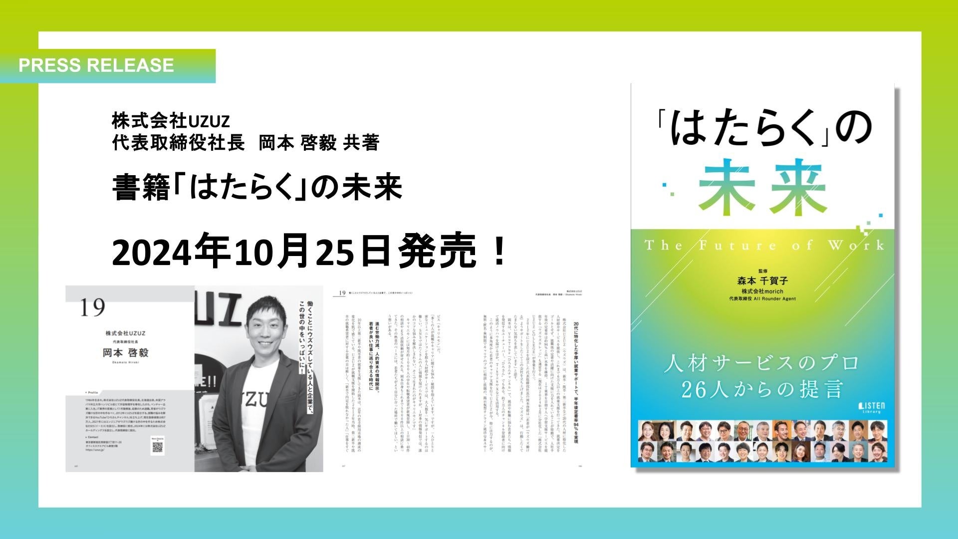 株式会社UZUZ(東京都新宿区、代表者:岡本啓毅)は、株式会社morich森本 千賀子氏監修・リスナーズ株式会社のプロデュースによる書籍『「はたらく」の未来』に共著者として参画し、同著が2024年10月25日にAmazon.co.jpより発売されることをお知らせいたします。