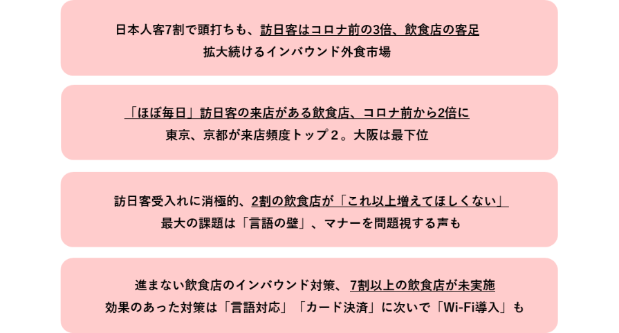 コロナ前の3倍、インバウンド外食市場進まない。飲食店側の対策、7割以上が未実施