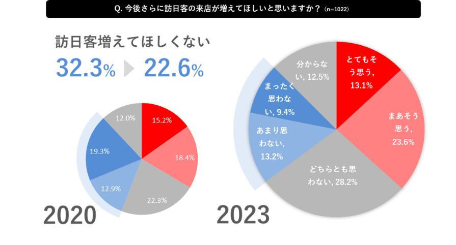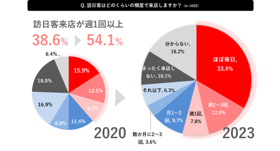 ②「ほぼ毎日」訪日客の来店がある飲食店、コロナ前から2倍に