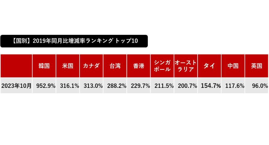 韓国人客はコロナ前の9.5倍、中国人客は10月初のコロナ前超え
