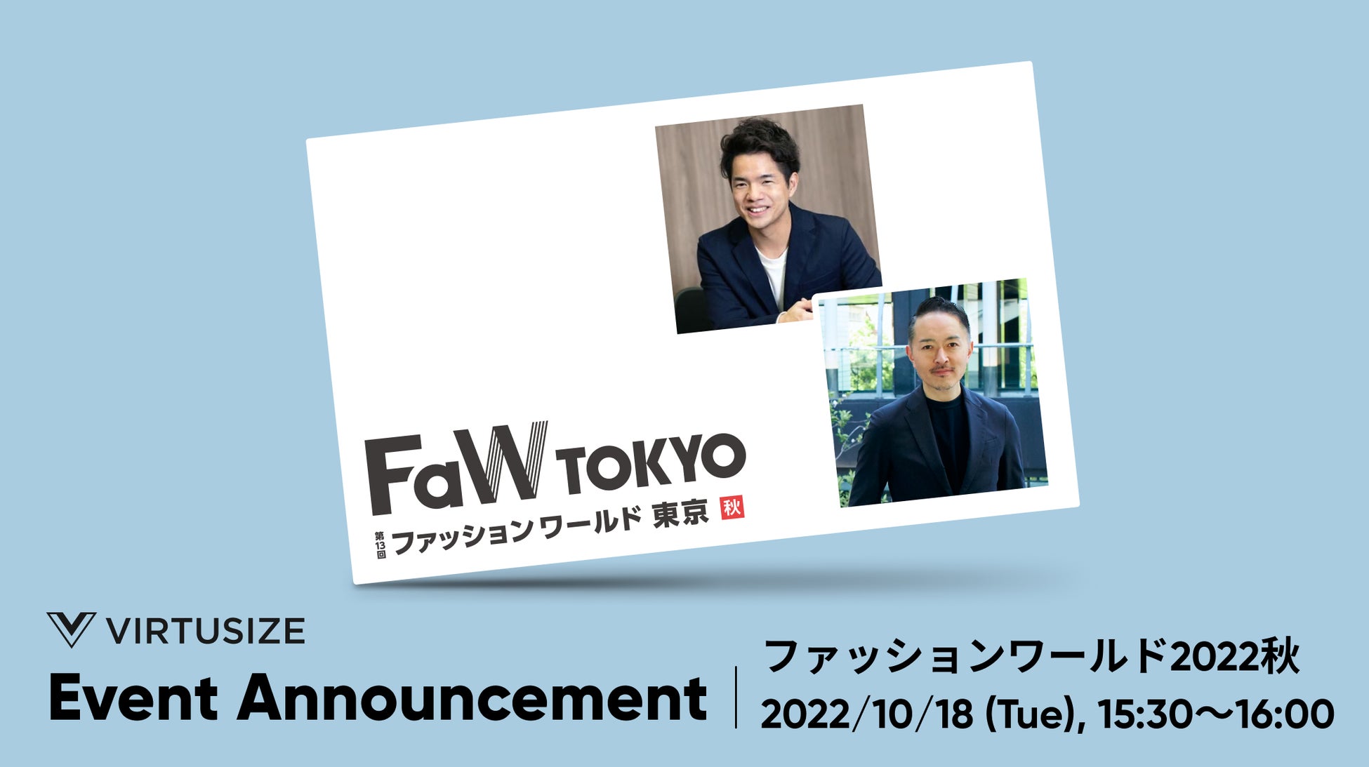 株式会社Virtusize(代表取締役:上野オラウソン・アンドレアス、本社:東京都港区、以下 Virtusize)は、2022年10月18日より20日まで東京ビッグサイトにて開催される「FaW TOKYO (ファッション ワールド 東京)」にブース出展およびセミナーを開催致します。