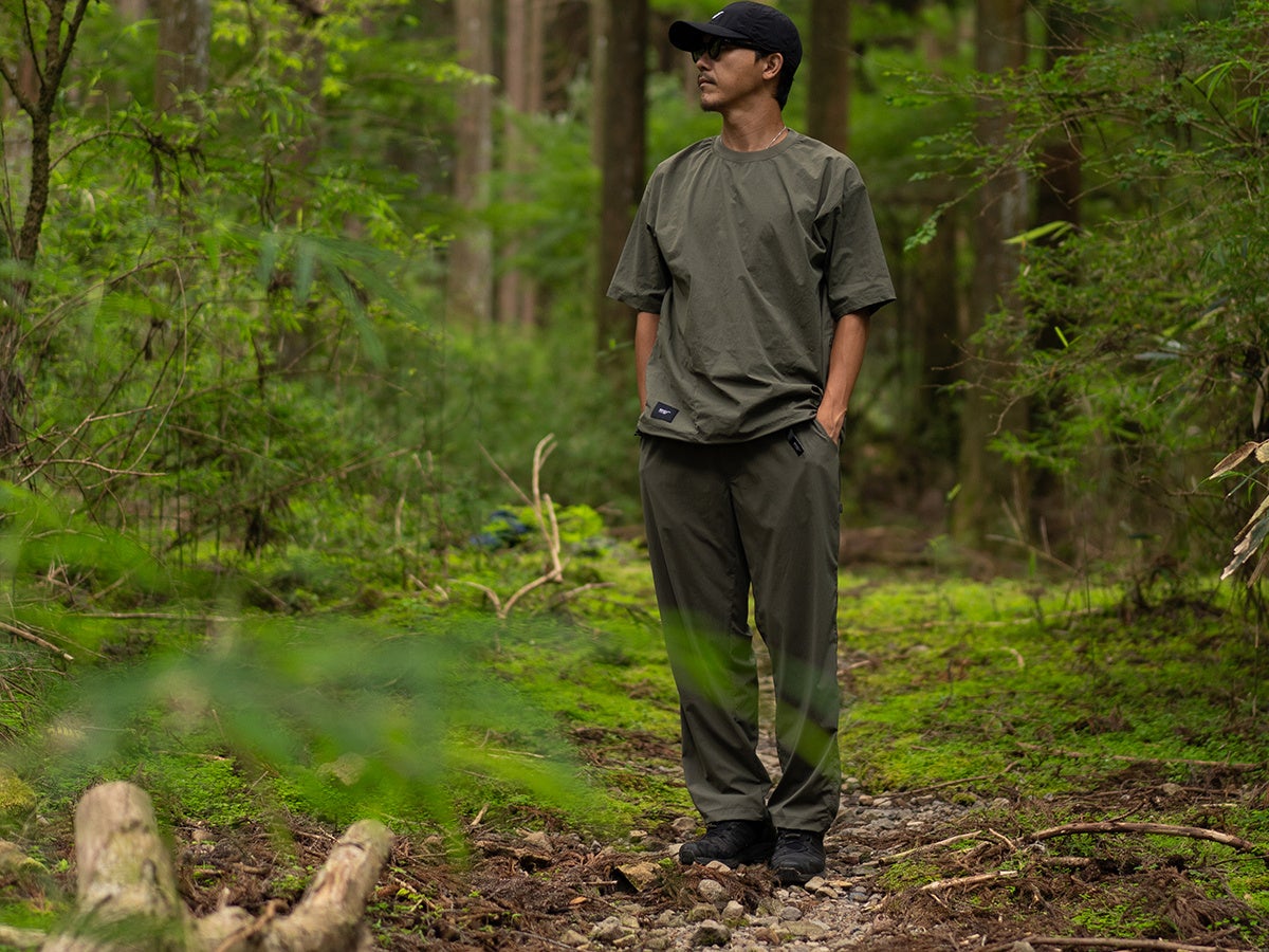 Tシャツ・パンツともに同素材を採用しており、セットアップコーディネートも可能。スタイルと機能を兼ね備えた、新たなアウトドアユーティリティウェアです。