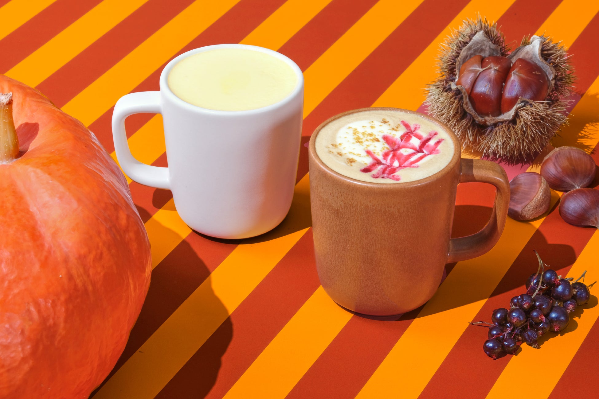 秋の味覚を、色合いとともに味わえるシーズナルドリンク「かぼちゃと栗のラテ/栗かぼちゃミルク」9月26日 発売