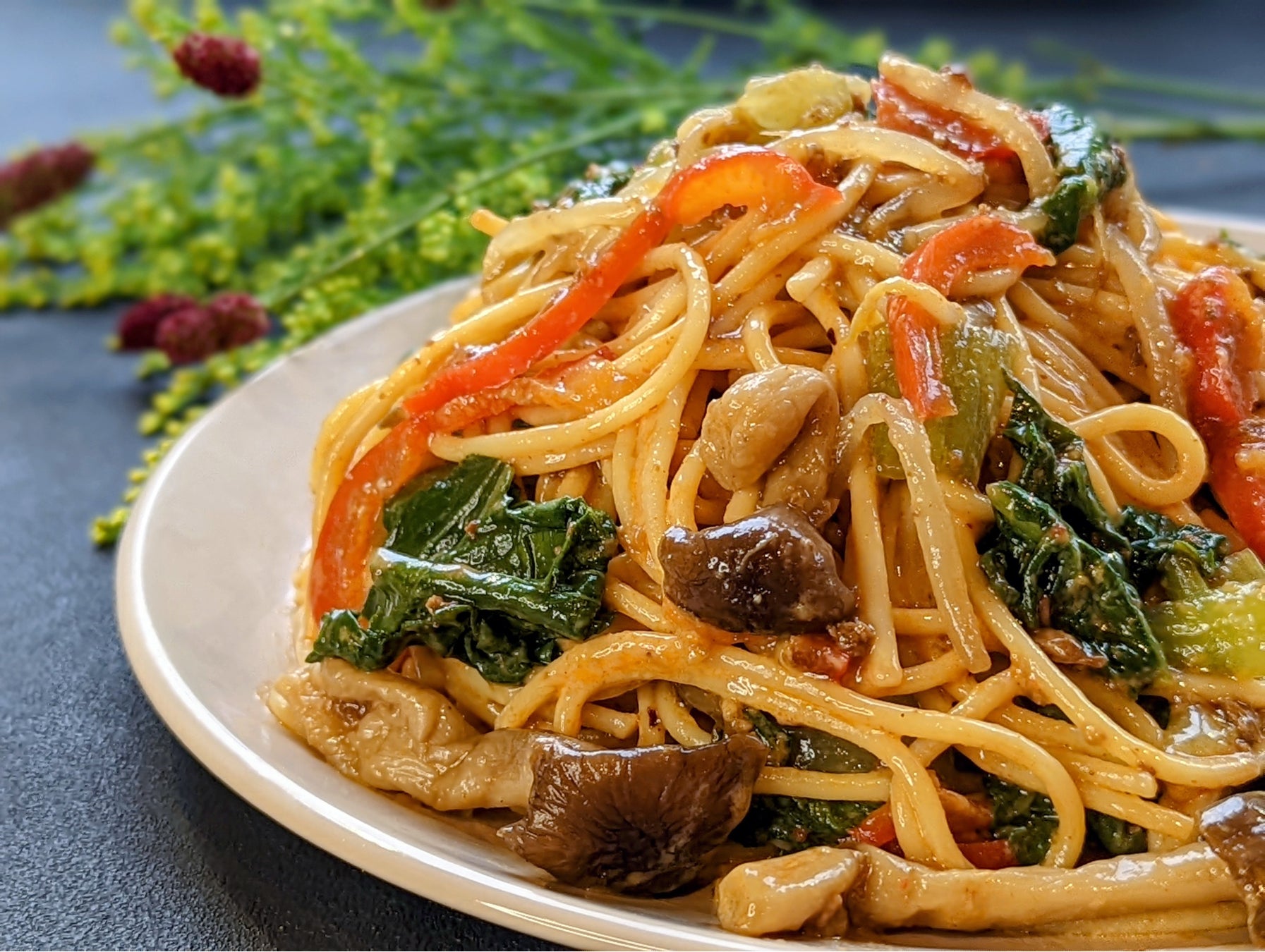 栄養の宝庫である大豆を皮ごと裏ごし状にした大豆乳のまろやかな味わいと、ラー油や豆板醤が効いた本格的な辛みを楽しめます。しめじやチンゲン菜など具材もたっぷり、大人味の坦々麺風パスタサラダです。