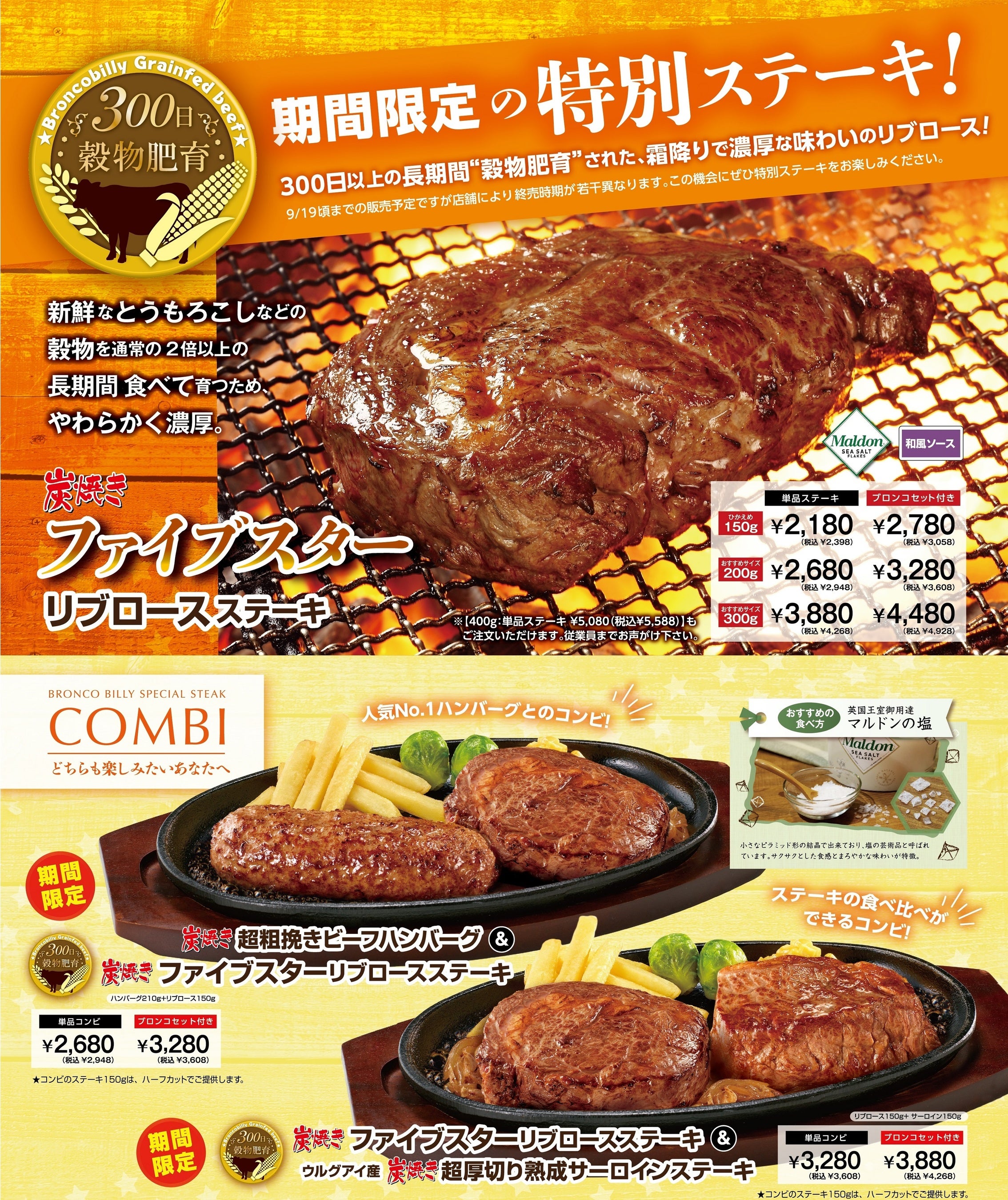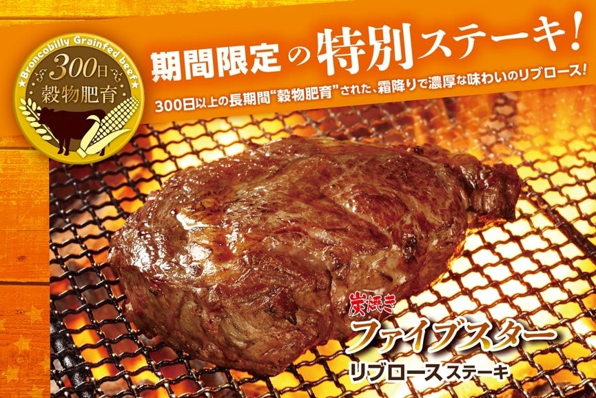 食欲の秋にプチ贅沢!期間限定『炭焼きファイブスターリブロースステーキ』も提供中!