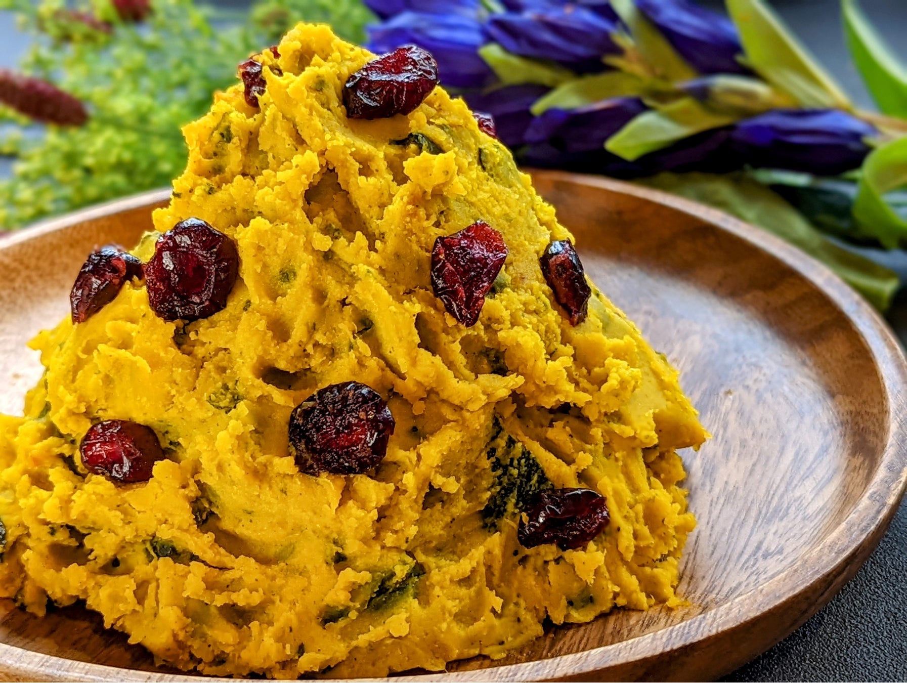 皮まで丸ごと使ったかぼちゃの甘みと、ドライクランベリーの甘酸っぱさがアクセントの、スイーツ感覚で楽しめる、秋らしいサラダです。