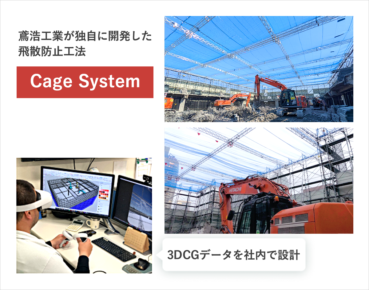 導入コストと待機損料を抑え、解体工事の事故を防ぐCage System