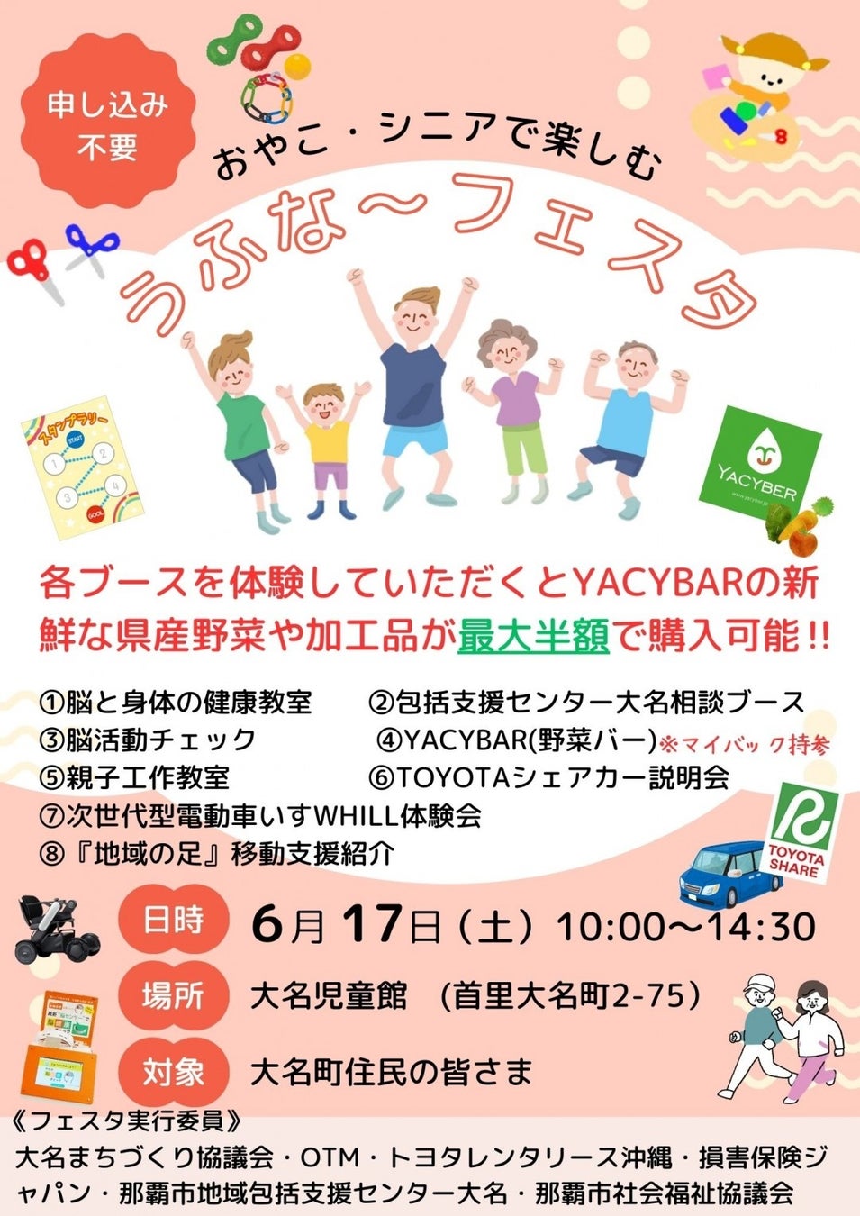 「地域でのコミュニケーション活性化/孤立させない環境」とし+地域住民の方々の心身の健康促進を図った「助け合う社会」を形づくる第一歩とし、開催いたします。