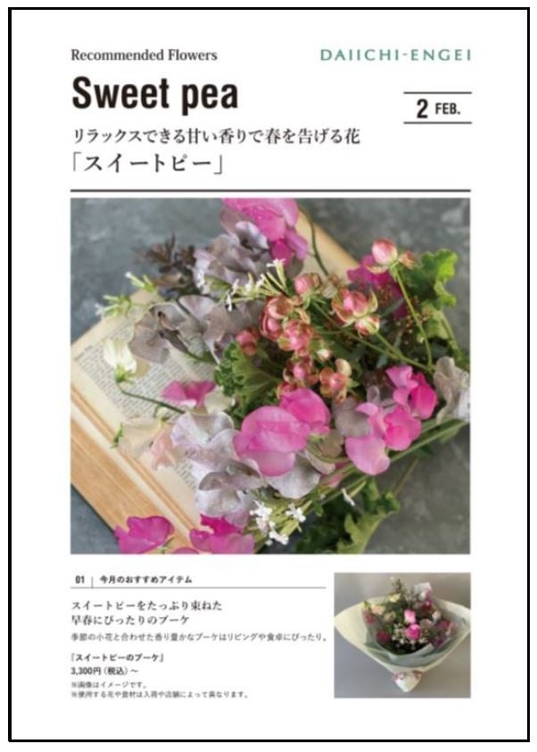 - 2月のおすすめは、リラックスできる甘い香りのスイートピー