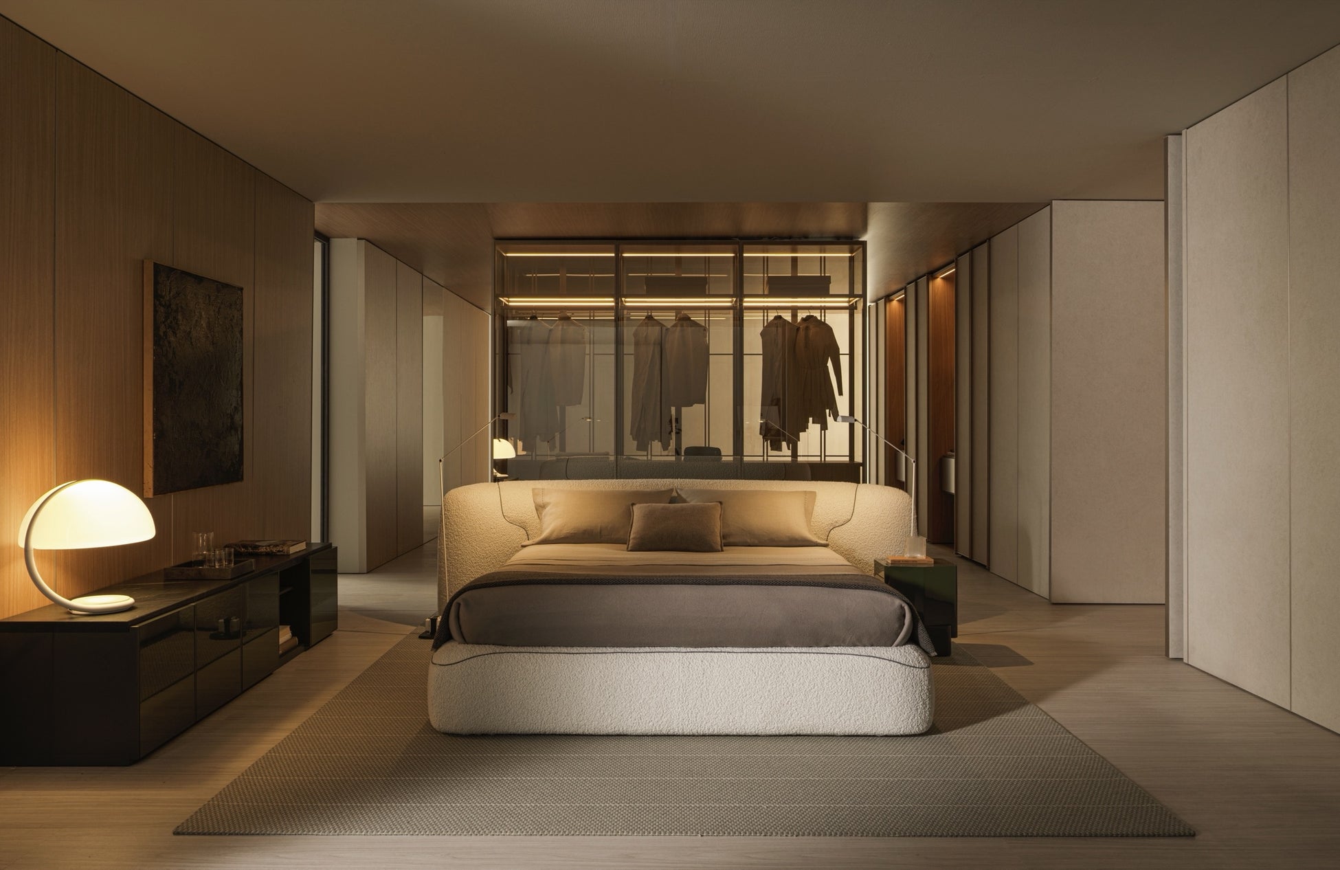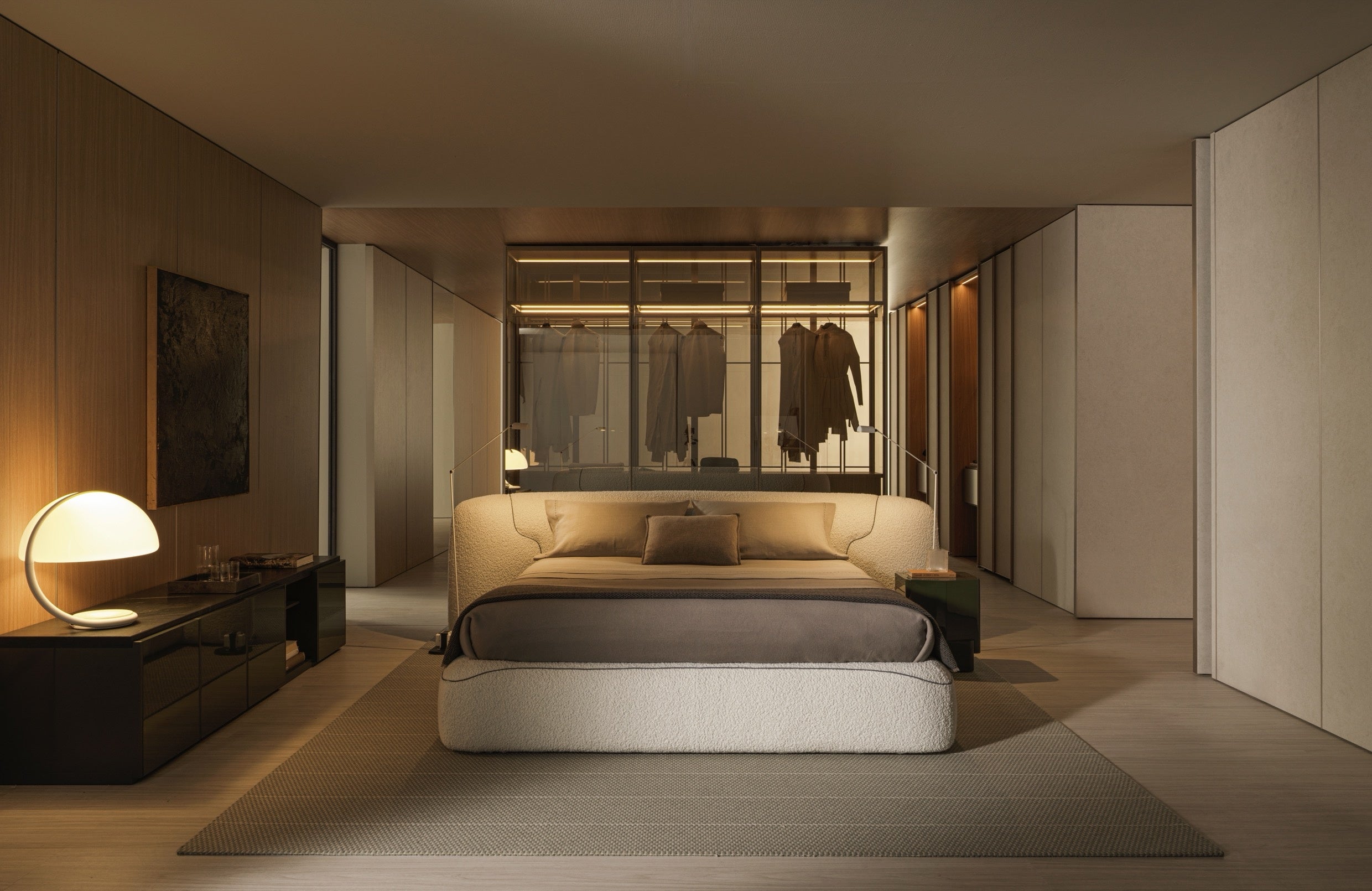 THEO ベッドはモルテーニの特徴でもある、"あらゆる空間に調和する高い適応力"を象徴するように、コンテンポラリーからモダンまで自然に溶け込みながら、寝室の主役として存在感を放ちます。本質的で直感的なフォルム、そしてまるで抱擁されているかのように身体を包み込む柔らかなプロポーションが、穏やかな休息の時間を約束します。