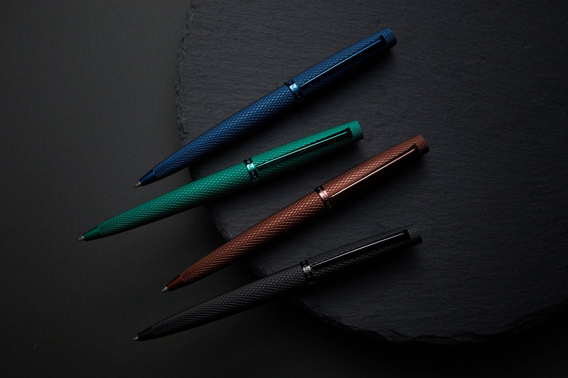 VIPER(バイパー)は、ギロシェパターンの彫刻が、アノダイズ加工のメタリックな風合いの仕上げとも好相性となっており、流線型のフォルムはボディ、グリップ、ペン先へと一体感のある曲線を描きます。