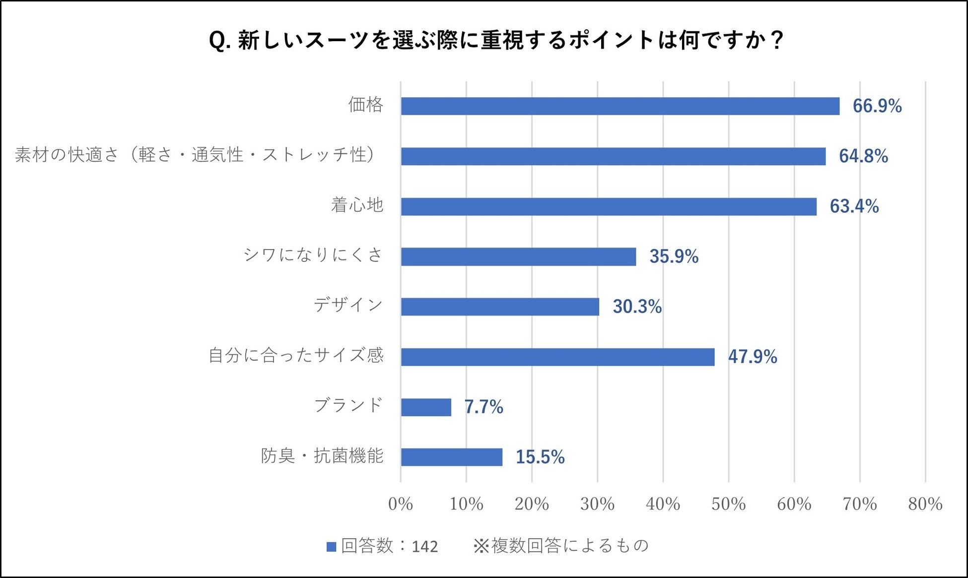 ■新しくスーツを購入する際に重視するポイントは「価格」や「素材の快適さ」