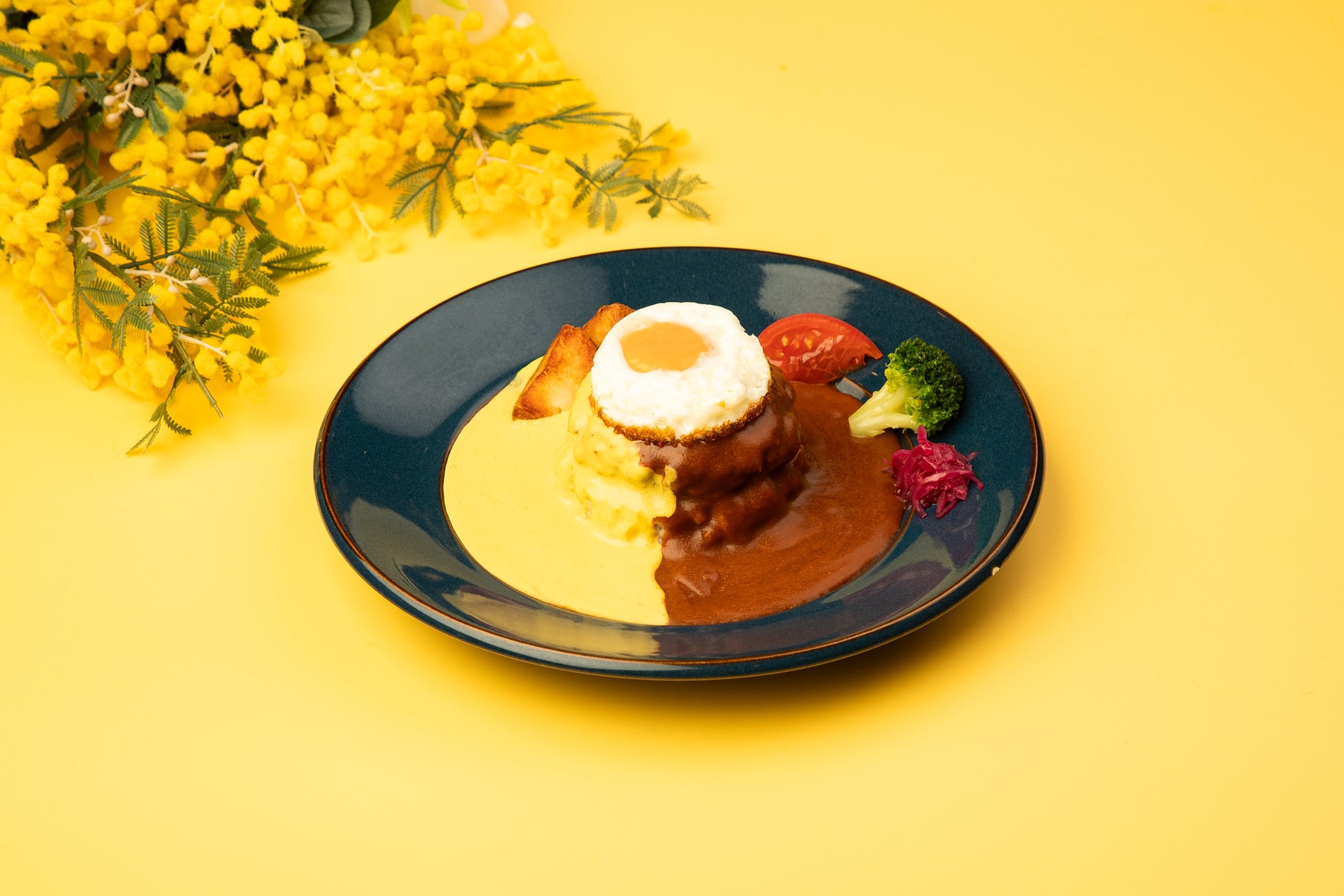 ビーフ100%粗挽きハンバーグに2種のソース(自家製ミモザソース&デミグラスソース)をあわせた見た目からおいしいロコモコプレート。まずはミモザソースと、続いてデミグラスソースと、最後に2種のソースをあわせて、と三者三様の味わいが楽しめます。ガーリックライスとあわせることで、旨味・コク・パンチの絶妙なハーモニーが広がる魅力あふれるワンプレートをお楽しみください。
