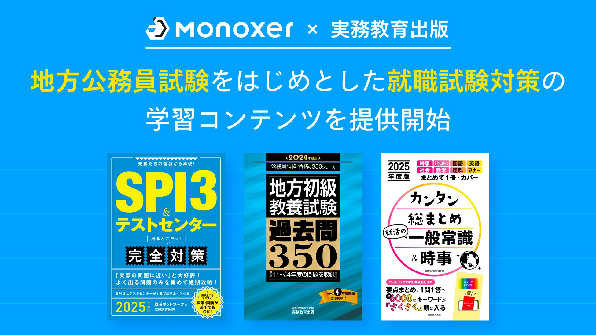 実務教育出版と連携し、「Monoxer」にて地方公務員をはじめとした就職試験対策に関する学習コンテンツを提供開始