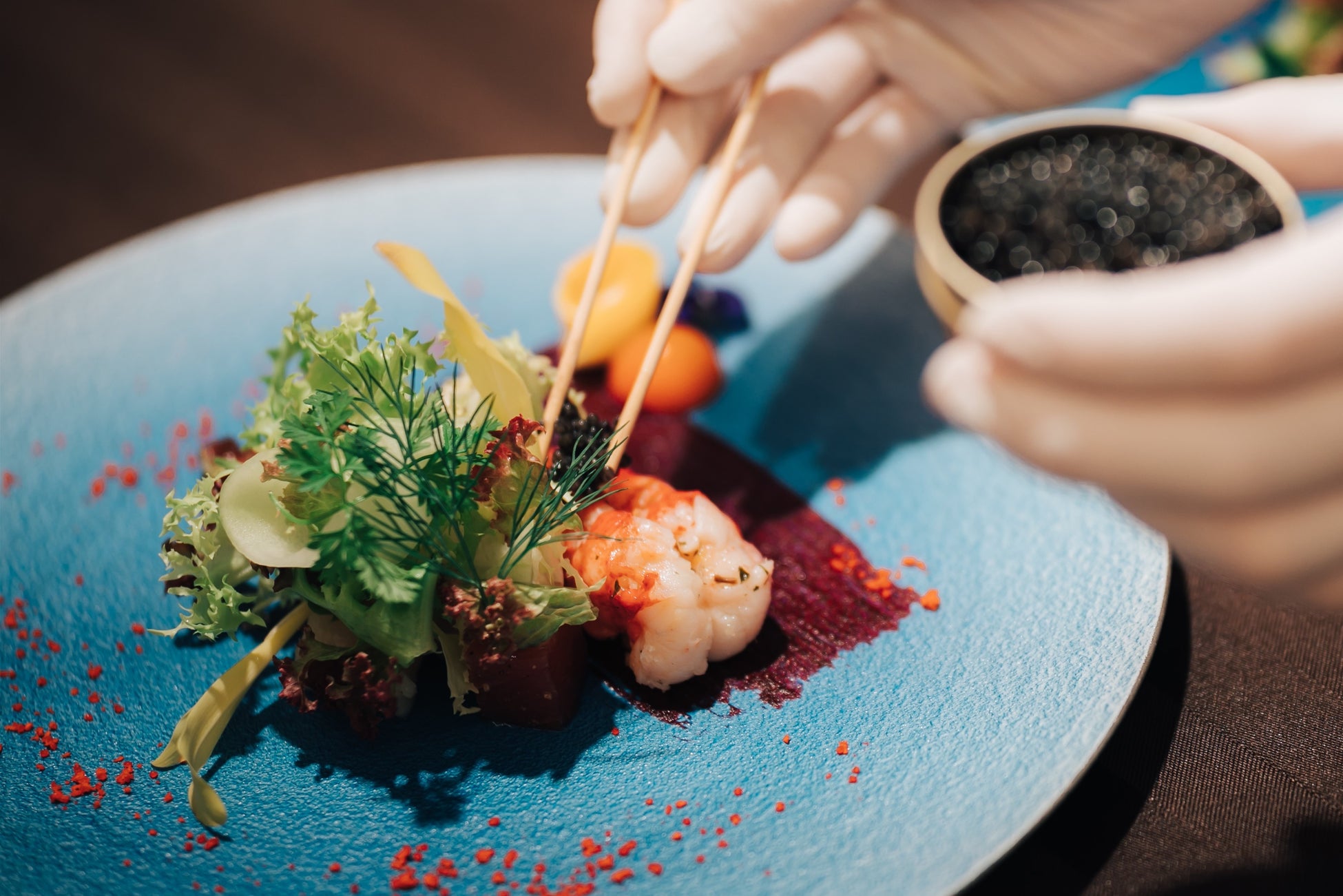今回は、フレッシュなオマールヌーヴォーと希少性の高い高級食材のブルーオマールを使用した特別メニューを総料理長 田中プロデュースのもと、和洋中の各料理長がそれぞれの英知と技を集結させ、迫力のあるライブキッチンよりお届けいたします。