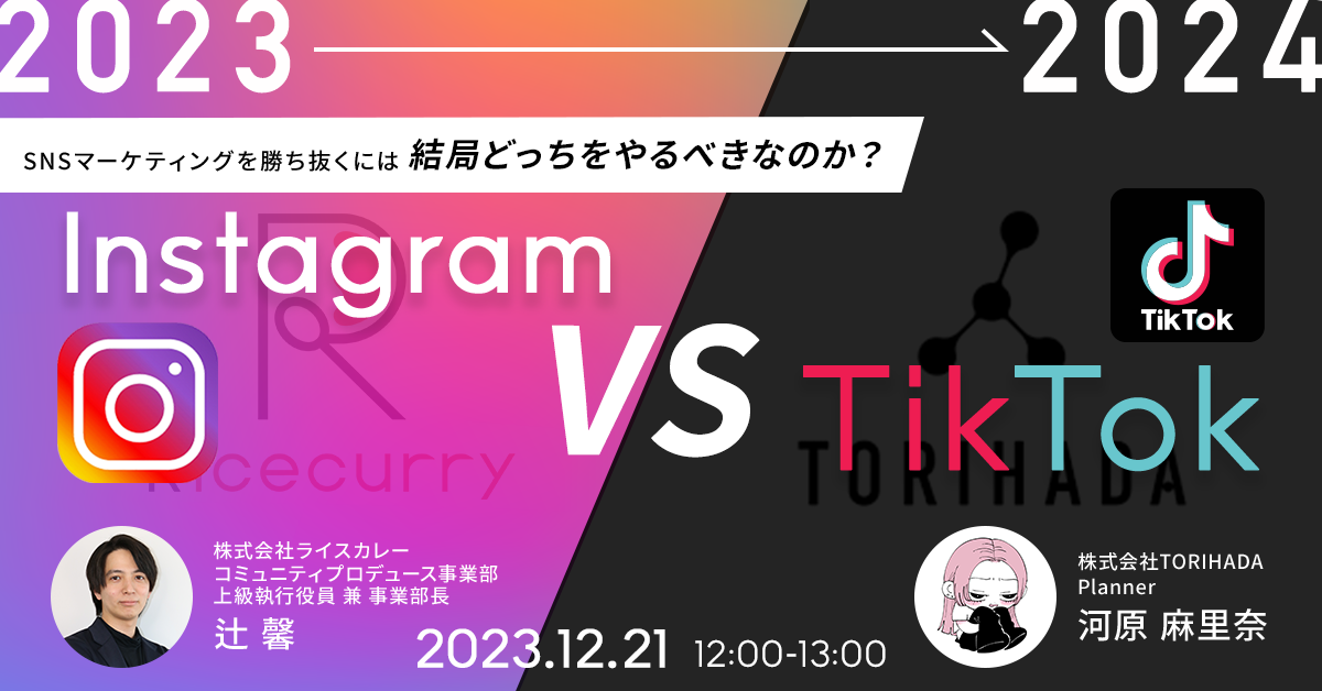 【Instagram VS TikTok】 結局どっちをやるべきなのか?2023→2024 SNSマーケティングを勝ち抜くには|TORIHADA×ライスカレー共催ウェビナーを開催