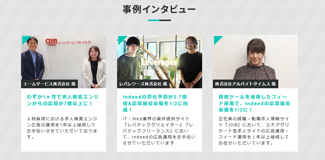 求人検索エンジンの広告運用をお任せいただき、各社様の課題解決につながった事例をご紹介しています。