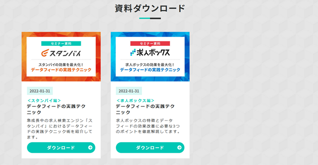 過去に開催したセミナーのダイジェスト資料や求人検索エンジンの運用改善に役立つ資料を無料でダウンロードいただけます。