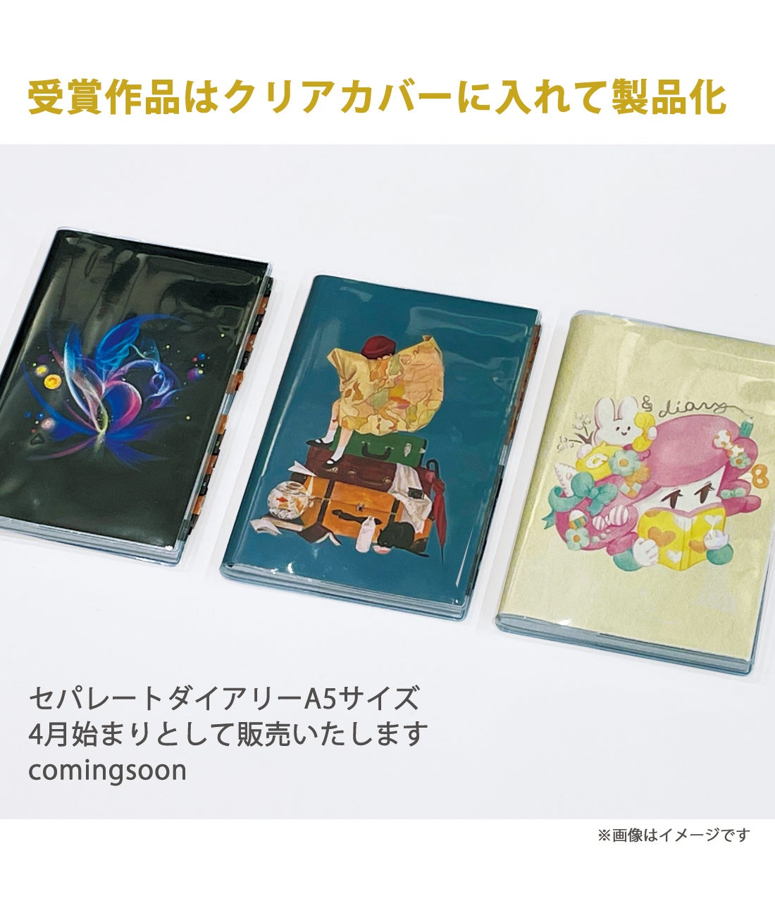 受賞作品のイラストはセパレートダイアリー4月始まり A5サイズ手帳カバー(A5サイズ)のPVCカバー内の型紙として使用されます。