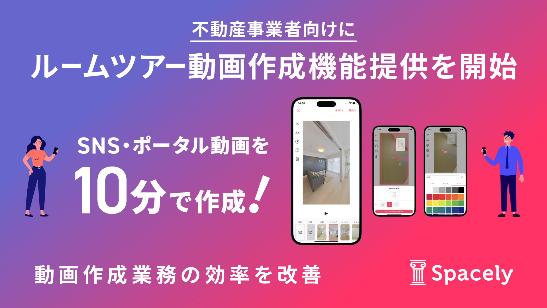 Spacely(スペースリー)が不動産事業者向けにルームツアー動画作成機能正式版の提供を開始 SNSやポータルサイトでの活用も可能