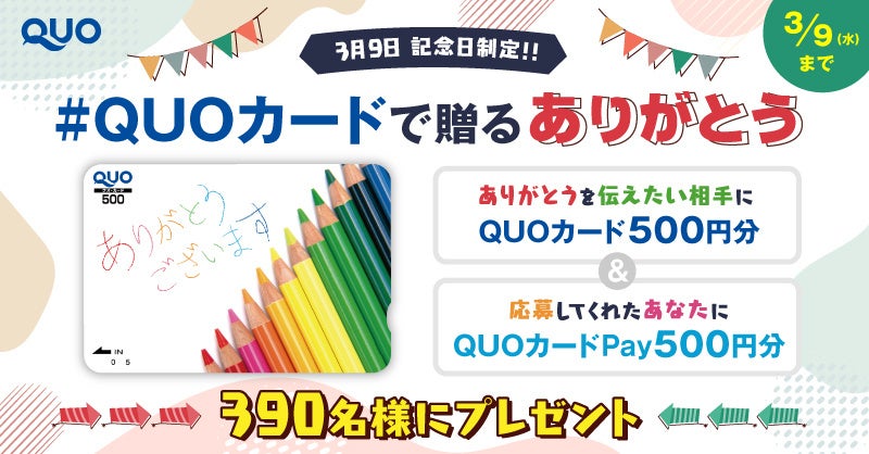 【3月9日は「QUOカードで『ありがとう』を贈る日」】「QUOカード」「QUOカードPay」で大切なあの人に「ありがとう」を贈れるキャンペーンを3月1日(火)より開始
