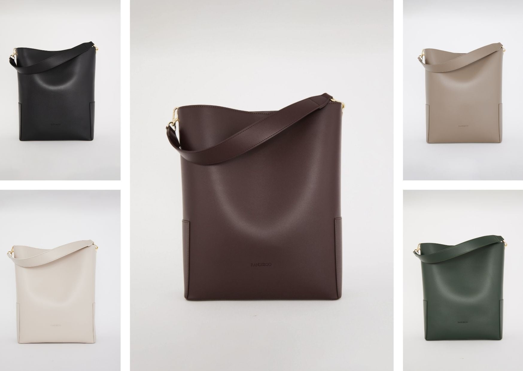 【RANDEBOOのシグネチャーアイテム。どの角度からみても美しく、機能面も充実しているミニマルなBucketバッグシリーズ。】
