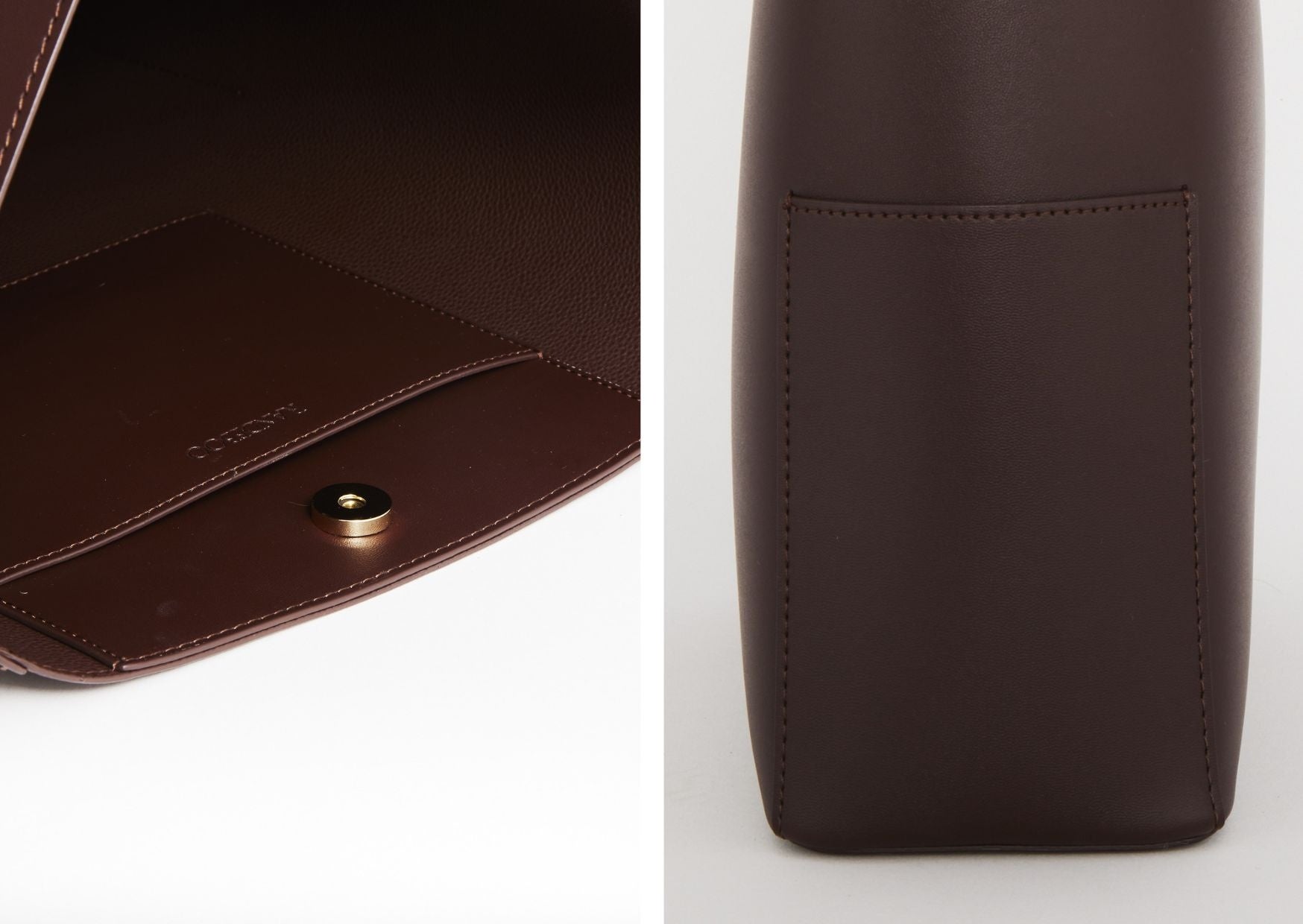 バッグの留め具は、固定ではないマグネットにし容量によって留め具の位置を合わせることが可能。