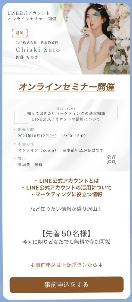 初心者でも簡単に、ゼロから自由にレイアウトを作成できるメッセージ。写真や動画、テキストを好みの位置に配置し、読み手のアクションを誘導できる。また、Linyの顧客情報と連動し、パーソナライズされた配信が可能。