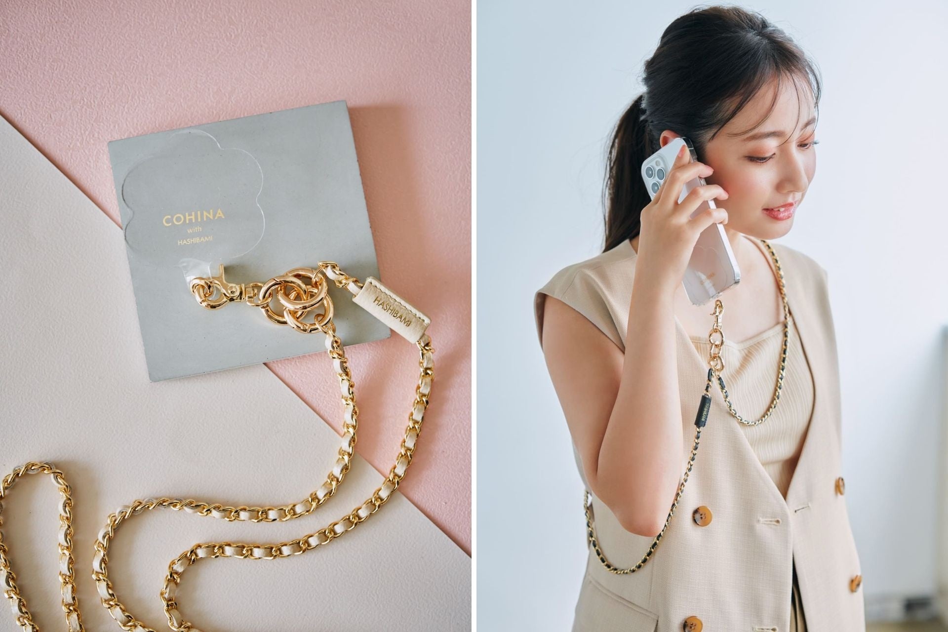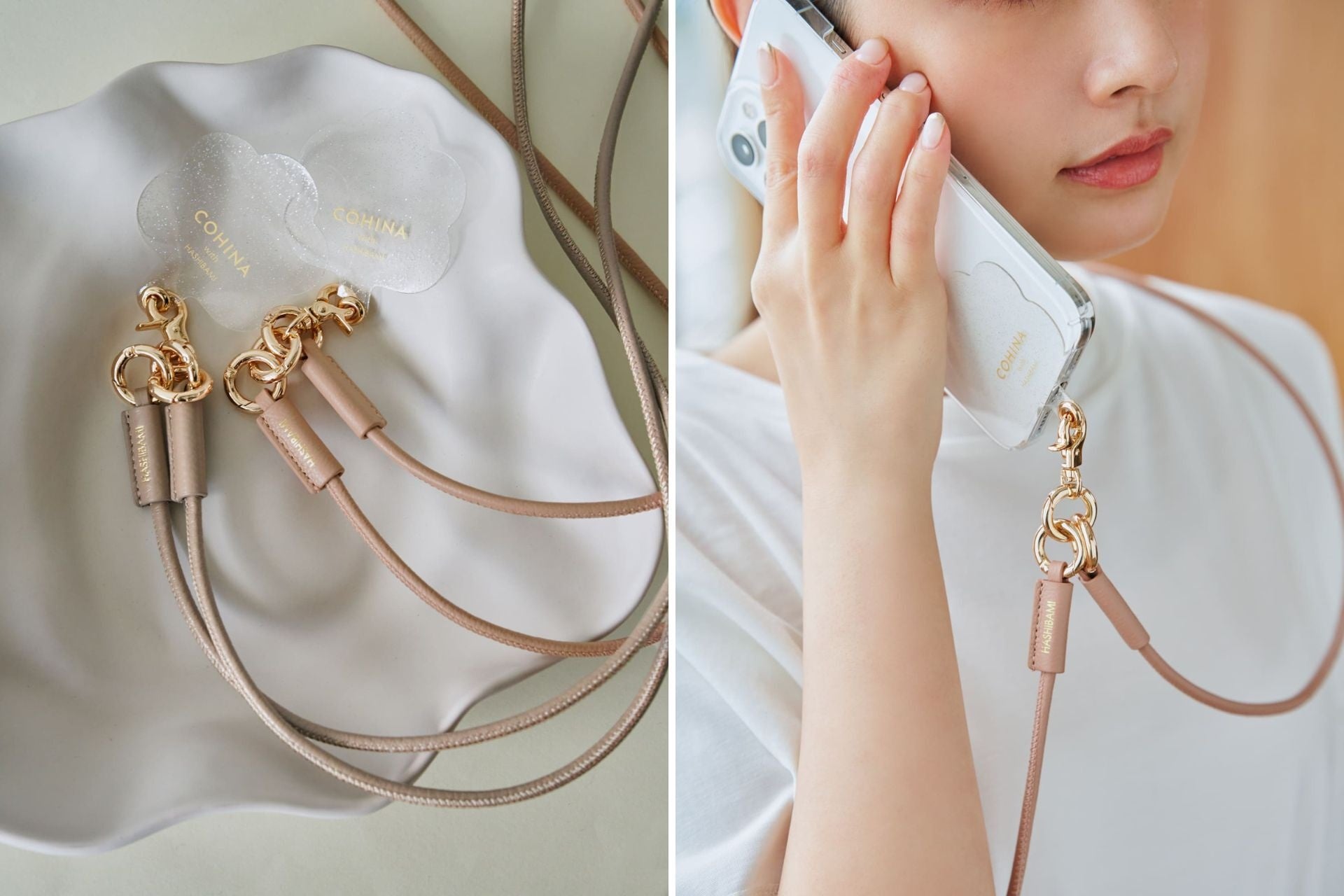 また、前回人気だったモバイルストラップもバリエーションを増やし再登場!小柄さんが日常使いやすいよう、HASHIBAMIの一般サイズより大幅にカットしたCOHINA限定サイズでご用意しました。今回はレザー2色とチェーンストラップのアイボリーに加え、ブラックが新登場します。