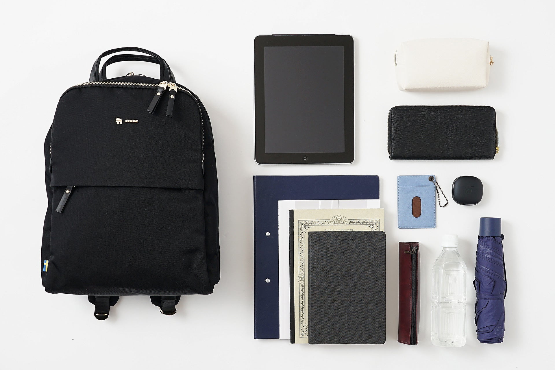PCも、お気に入りのポーチも。スリムな見た目ながら私の「全部」を持ち運べる、13Lの頼れる相棒。