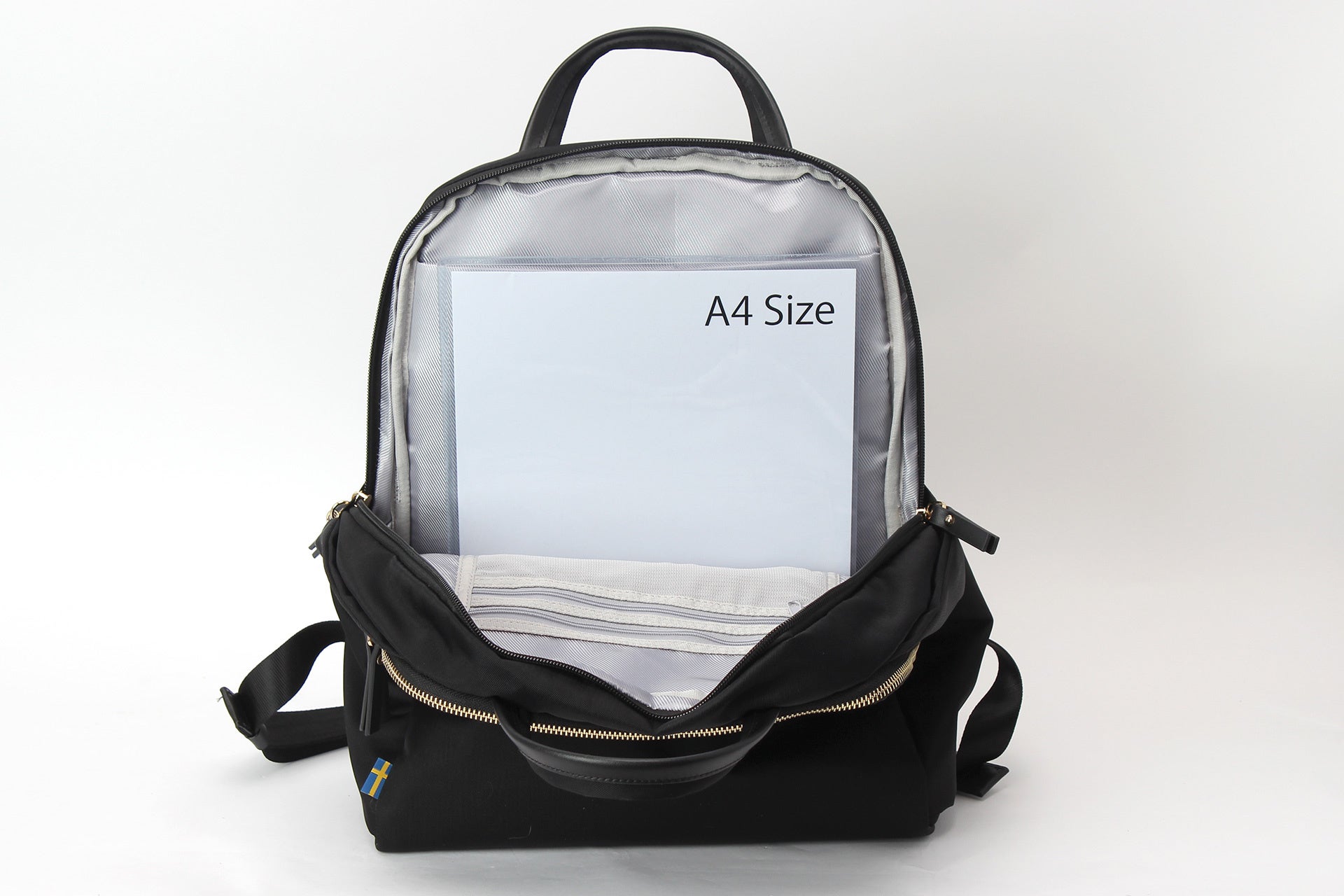 A4サイズがゆとりを持って収まる13Lの容量を確保。約530gと軽量ながら、お仕事の必需品をスマートにまとめ、大人の通勤スタイルを快適にサポートします。