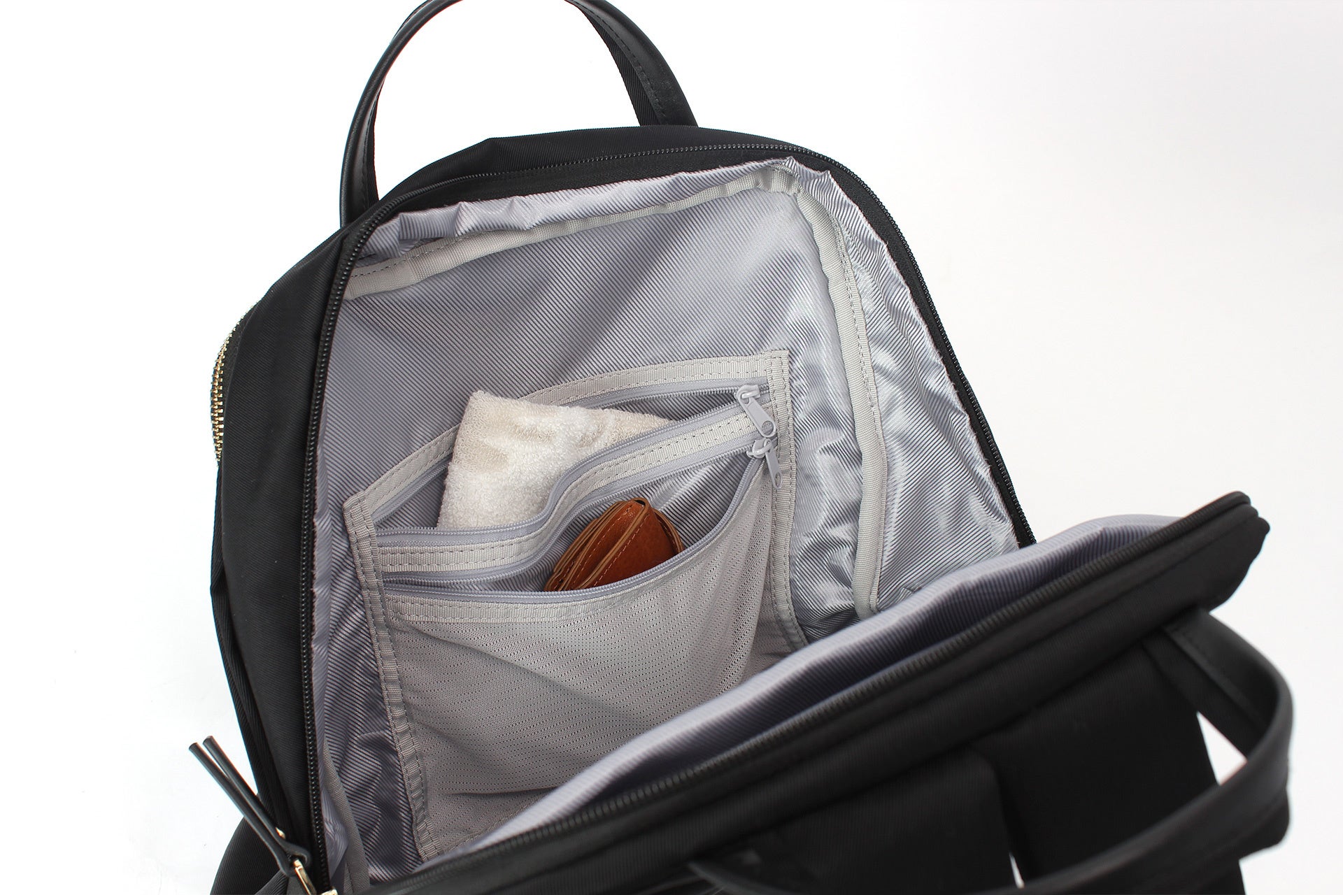 「あれ、どこに行ったっけ?」をゼロに。外側・内側合わせて計13箇所の収納スペースを備え、細かな持ち物からPCまで、すべてのアイテムに定位置を作れます。