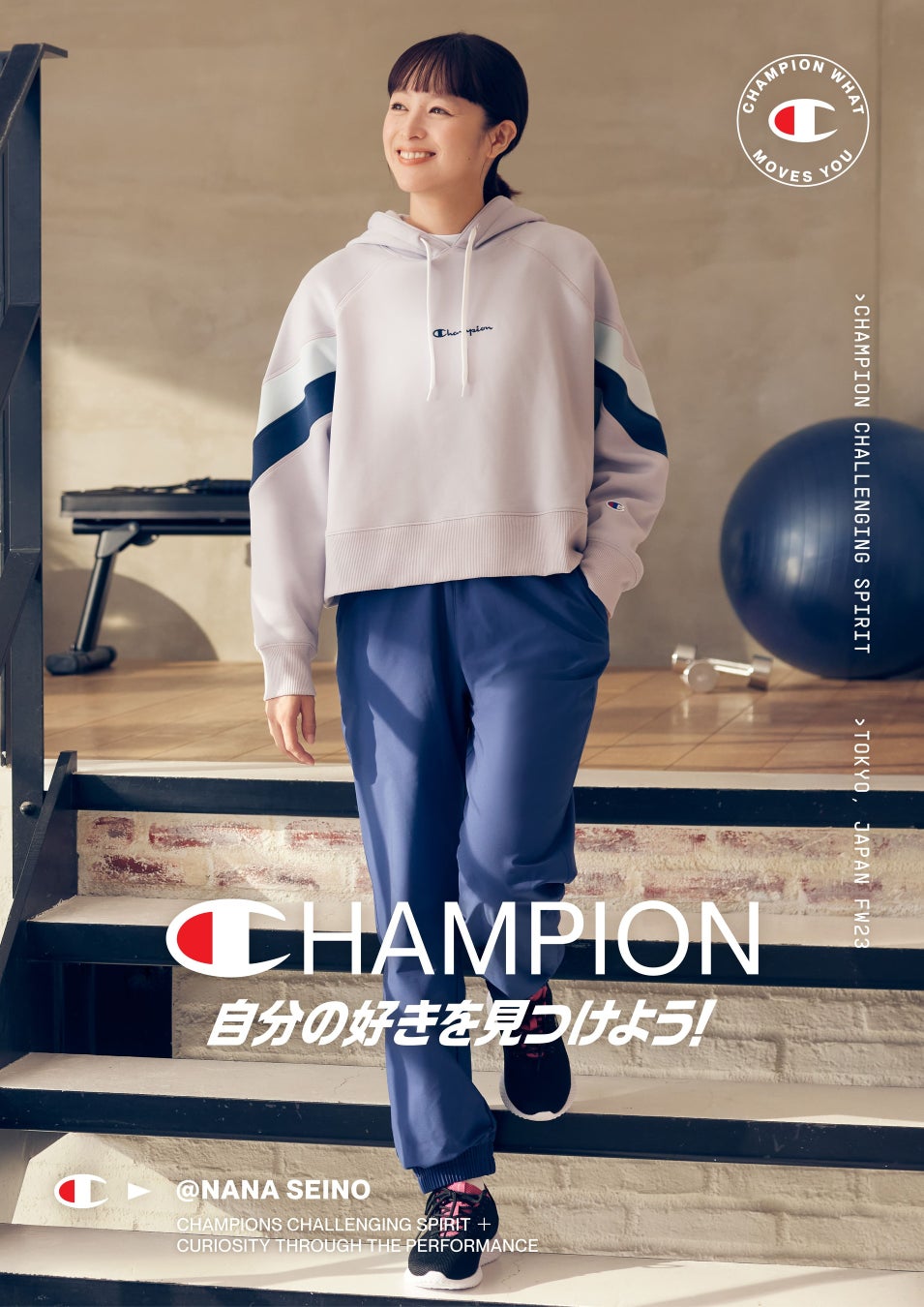 Champion は、2023年春より「自分の好きを見つけよう!」を新メッセージとし、スポーツを気軽に始めたり、自分らしく取り組むことの楽しさを伝えるとともに、日常からスポーツまでシームレスに着用できるアスレチックウェアのデザイン性や着心地の良さを発信しています。