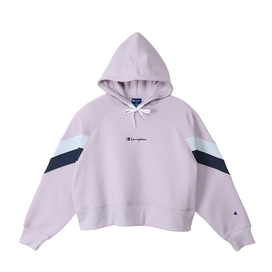 商品特長:ポリエステルにナイロンとポリウレタンをブレンドすることで軽量性とストレッチ性を高め、裏面を起毛した保温性に優れた生地を使用したTECH WEAVE®(テックウィーブ) テリー フーデッドスウェットシャツです。身幅、肩幅にゆとりを持たせたリラックスフィット。ラグラン袖の上腕部分に2色使いの切り替えを入れた特徴的なデザインです。胸にChampion(チャンピオン)ロゴを刺繍しています。同素材を使用したロングパンツ(CW-YS206)も展開しているので、セットアップでの着用もオススメです。