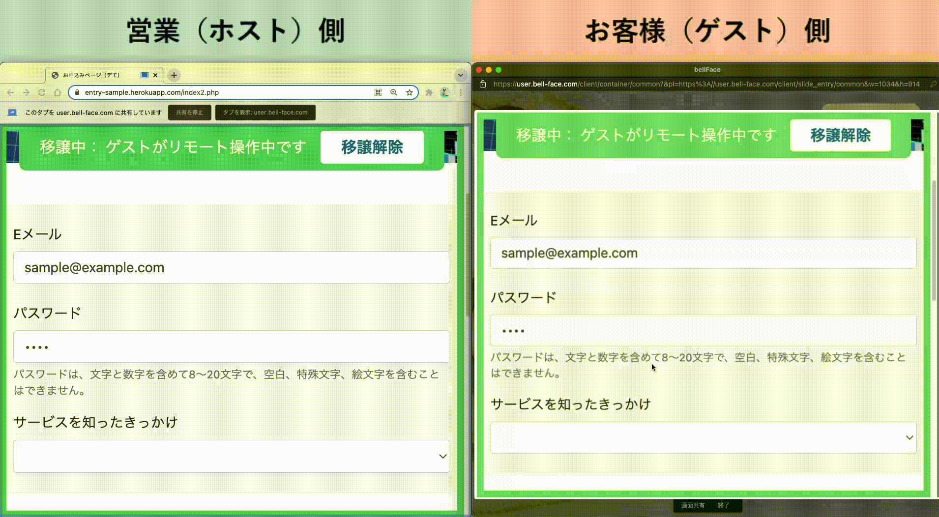オンライン営業システム「bellFace(ベルフェイス)」の開発・販売事業を行う、ベルフェイス株式会社(本社:東京都渋谷区、代表取締役:中島 一明、以下「ベルフェイス」)は、オンライン営業システム「bellFace」の新機能である「リモートコントロール機能」のβ版を一部顧客に向けて提供開始したことをお知らせします。