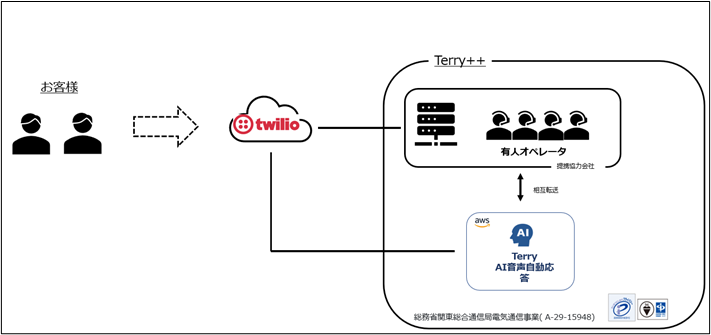 コールセンター業界におけるオペレータの採用難などによる人材不足が深刻化する中、Hmcommでは、AI音声自動応答システム(https://www.terry-hmcomm.com/ 以下、Terry)のソリューション提供を行ってまいりました。「Terry」とは音声認識と音声合成、自然言語処理を駆使しAIがお客様の電話に音声で自動対応するAIオペレータであり、「Terry++」はこの「Terry」と「人間のオペレータ」によって実現するハイブリッド型コールセンターとなります。Hmcommでは、新型コロナウィルスの感染拡大を受け、コールセンターのBCP(Business Continuity Plan:事業継続計画)対策の一環として機能を限定してサービスを提供しておりましたが、この度Terry++として以下のサービスを正式提供させていただくこととなりました。