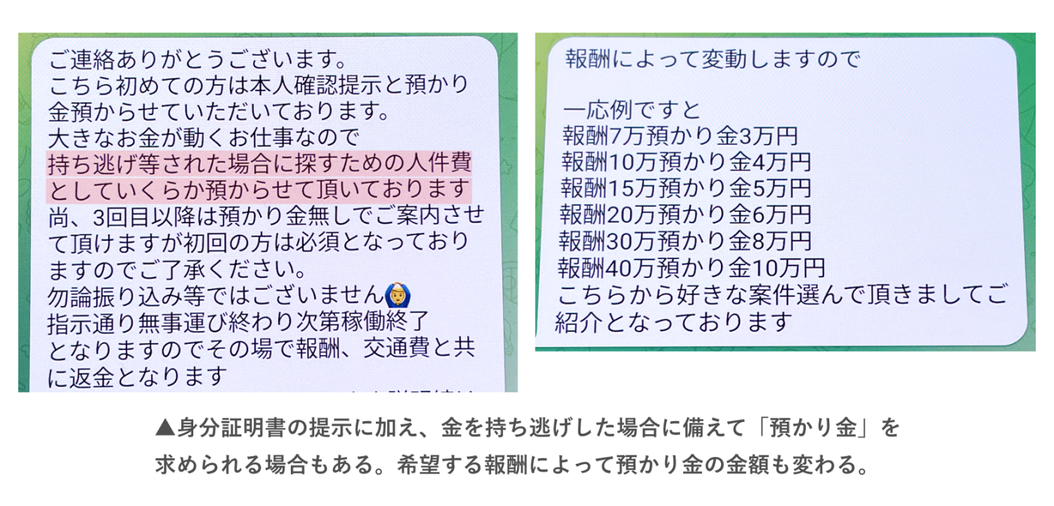 面接代わりに身分証の提示、持ち逃げした時のための預かり金… 逃げられないリスク