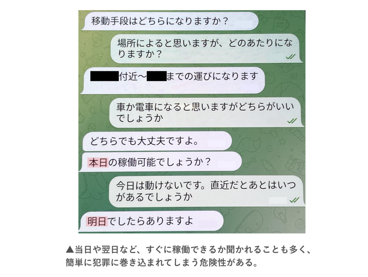以下のような犯罪に関する隠語を使った投稿も多くみられます。